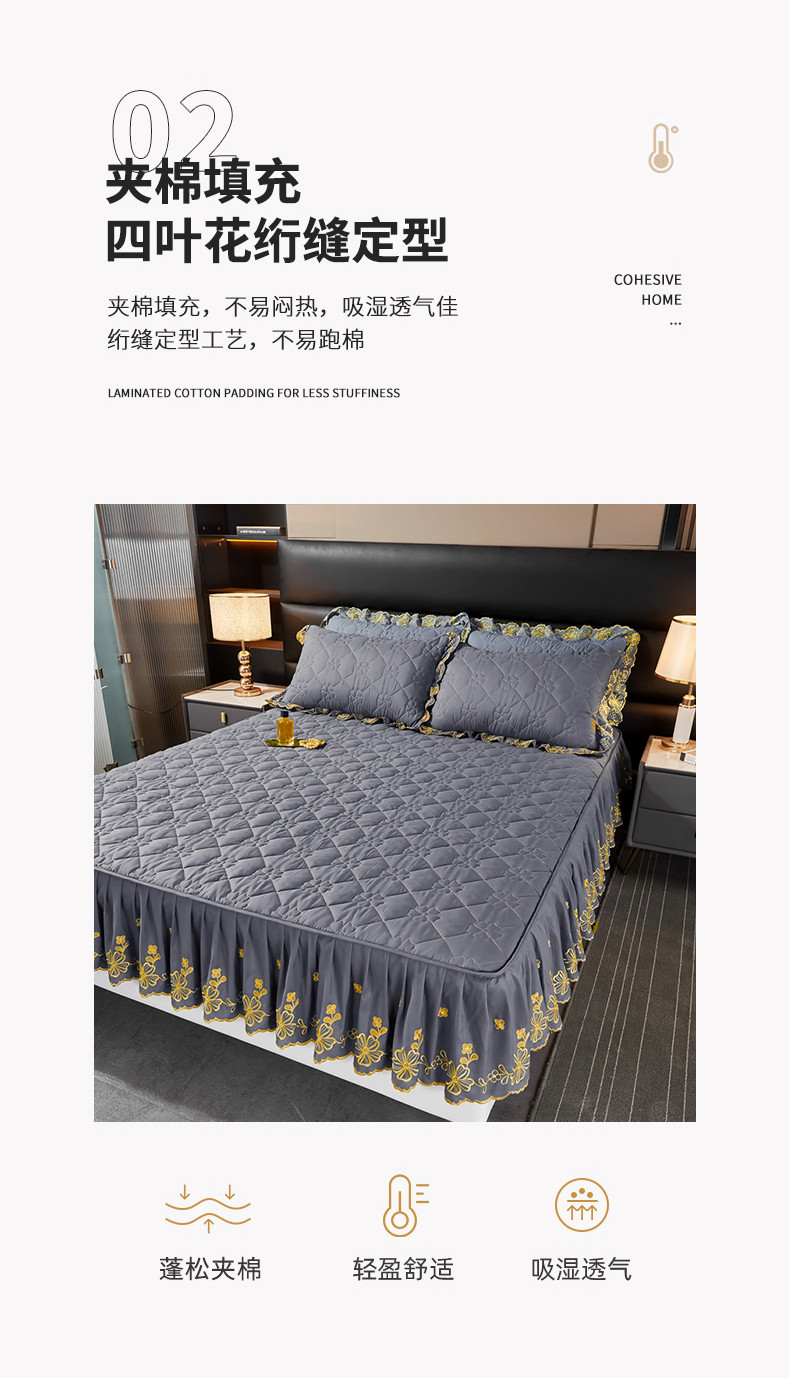 (总)家之硕家纺 2025春夏新款鹿锦棉蕾丝花边夹棉床裙单床裙床裙单件,苍穹雀语,国色天香,花香四溢,静若繁花,洛香米,迷香,陌上花开,叶间芳华