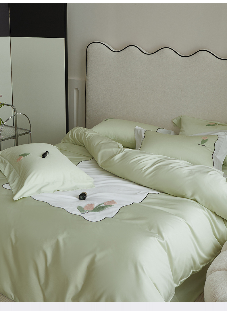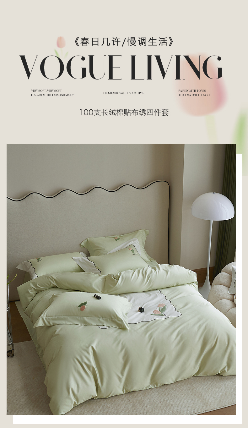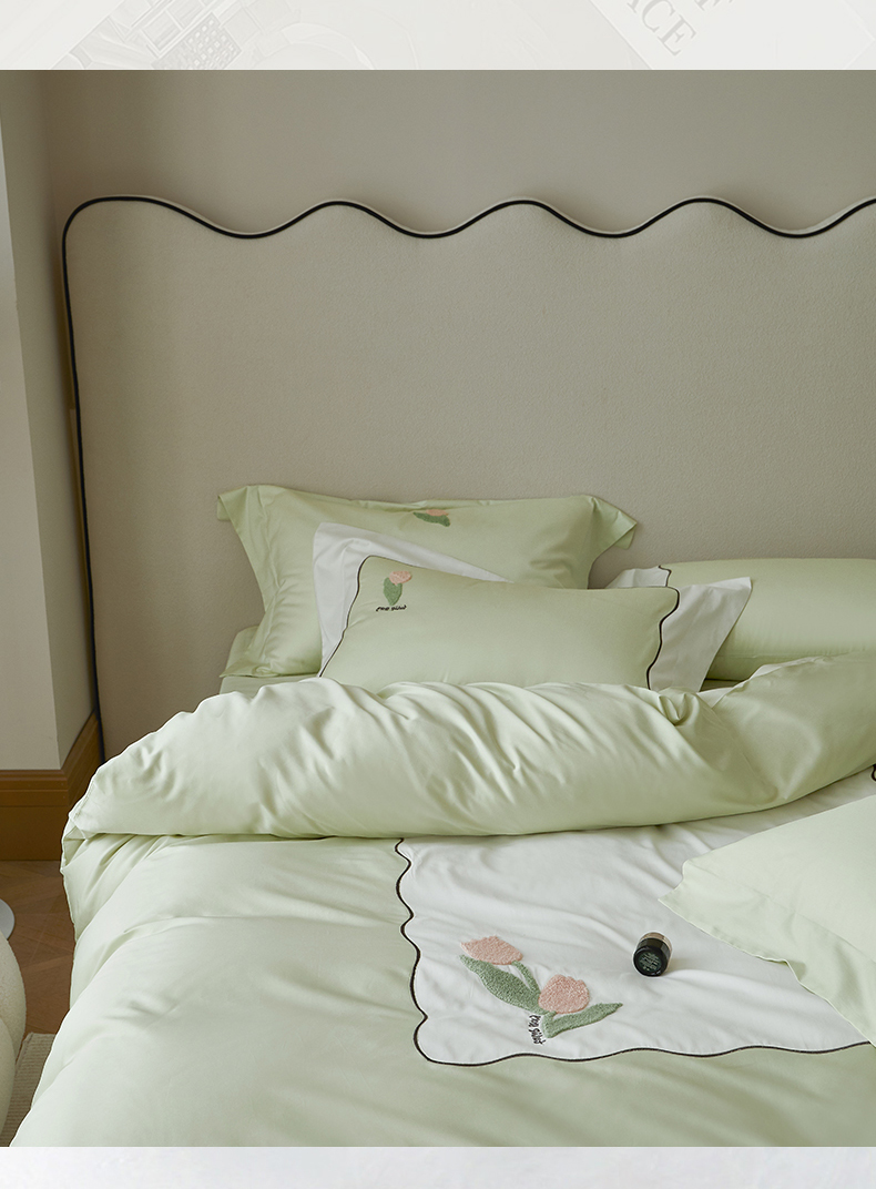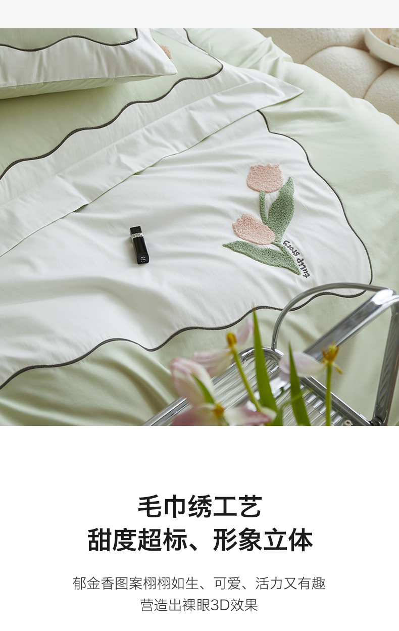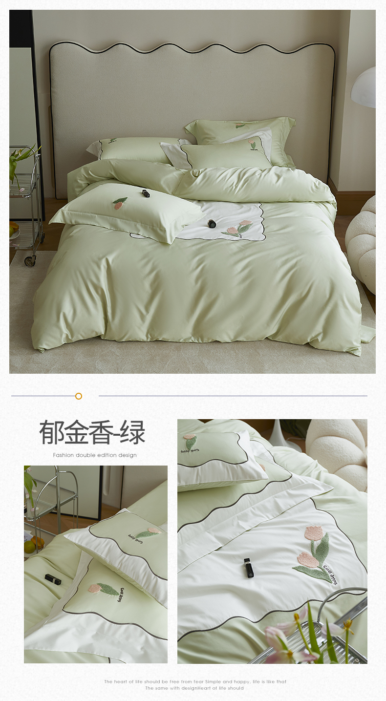 名品优仓 2023新款高支高密长绒棉贴布绣毛巾绣四件套-郁金香 郁金香-绿色