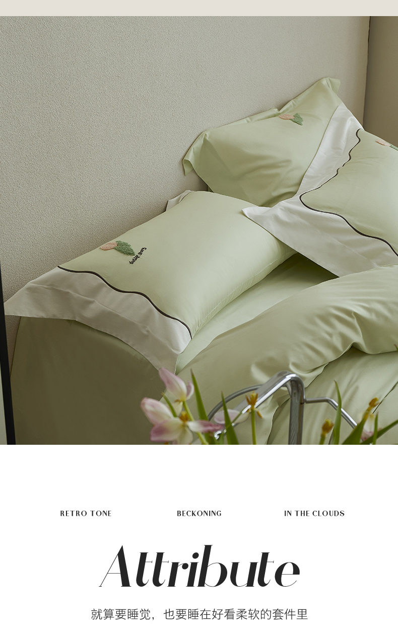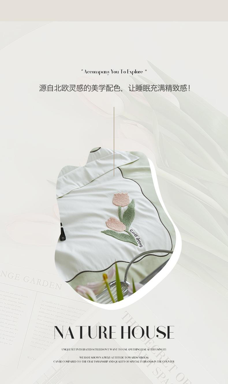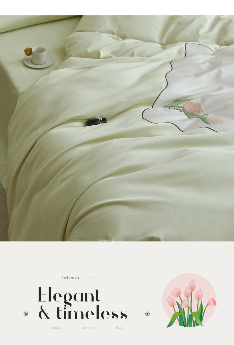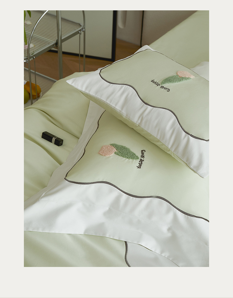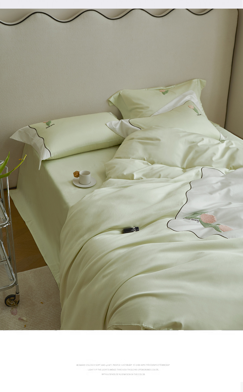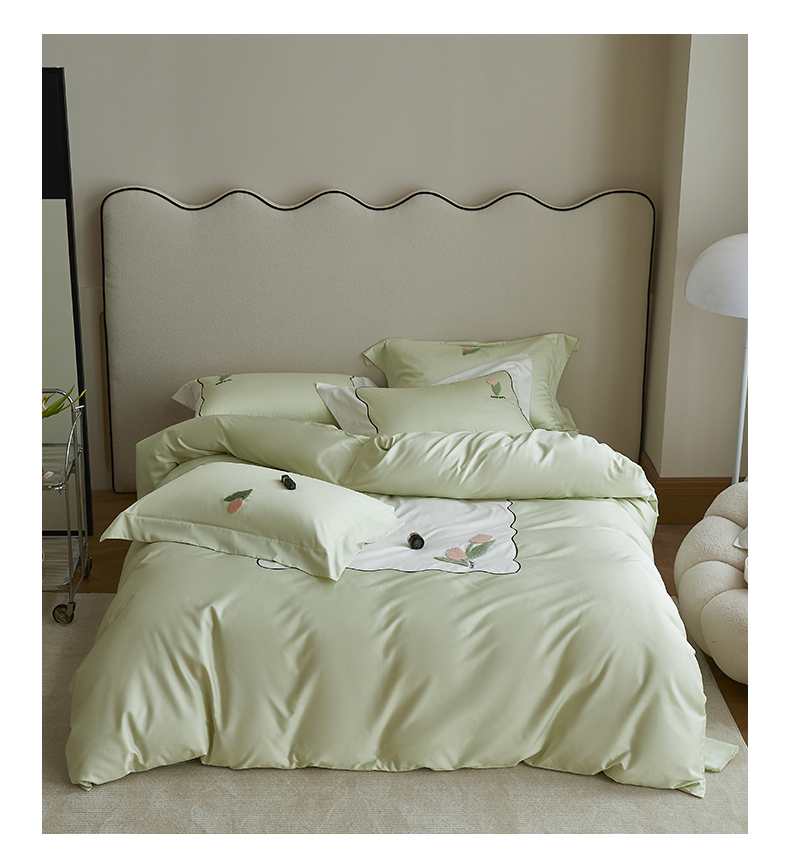 名品优仓 2023新款高支高密长绒棉贴布绣毛巾绣四件套-郁金香 郁金香-绿色