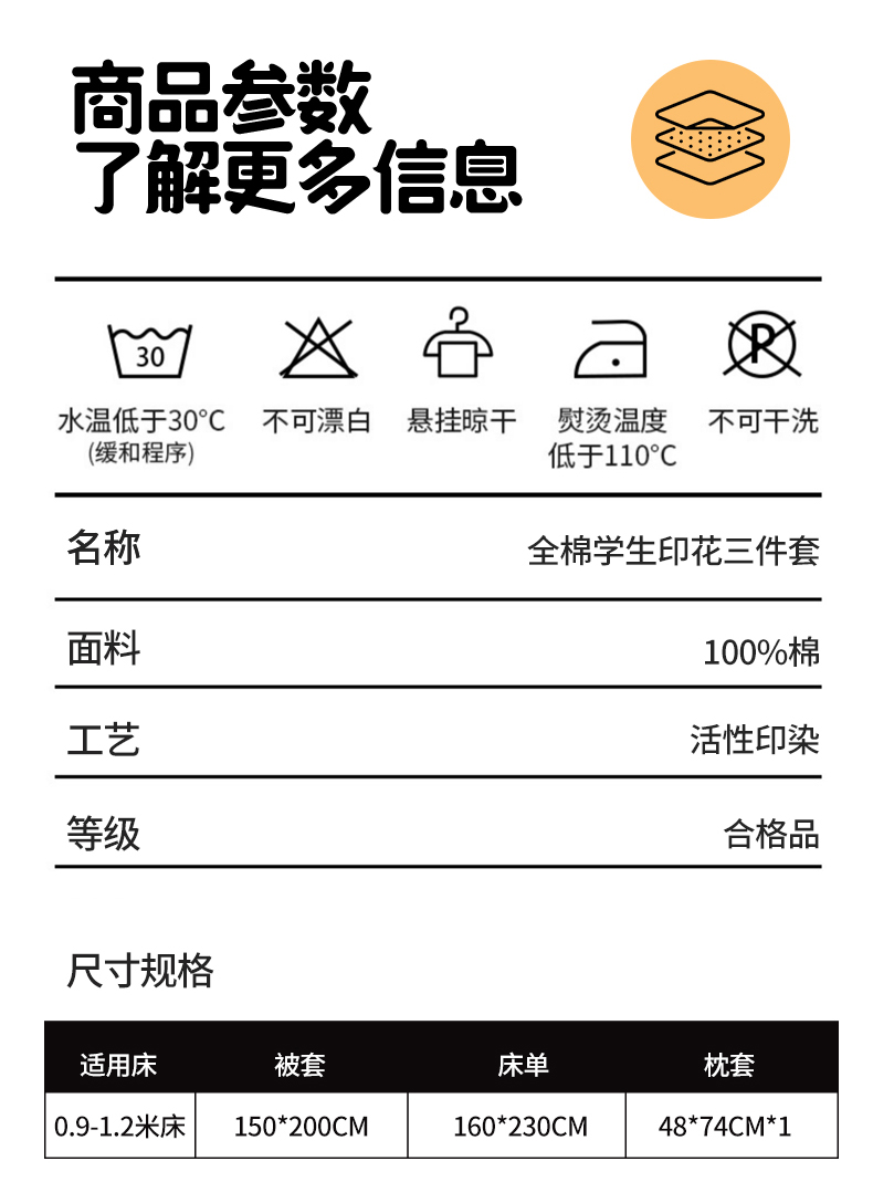 商品名称:(总)如约 2025新款学生季12868全棉印花三件套