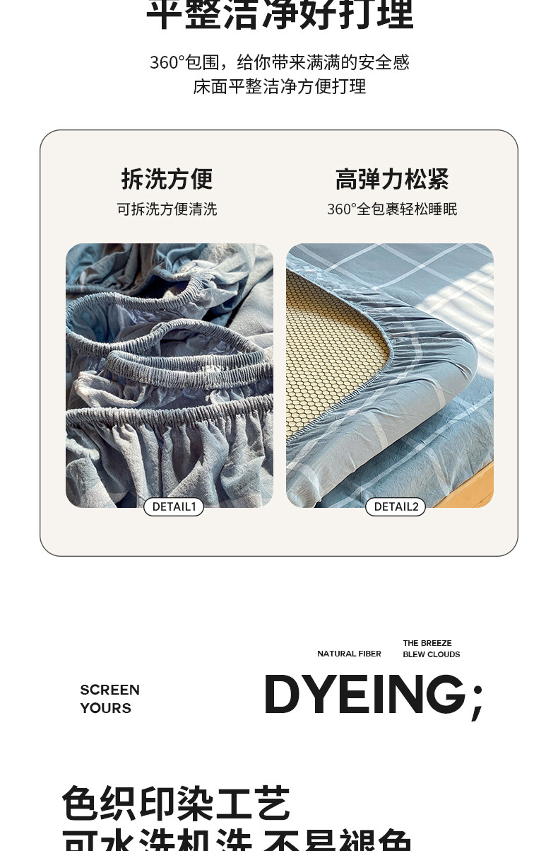 新款纯棉水洗棉床笠全棉床罩防尘罩儿童床套单人床垫保护罩床单
