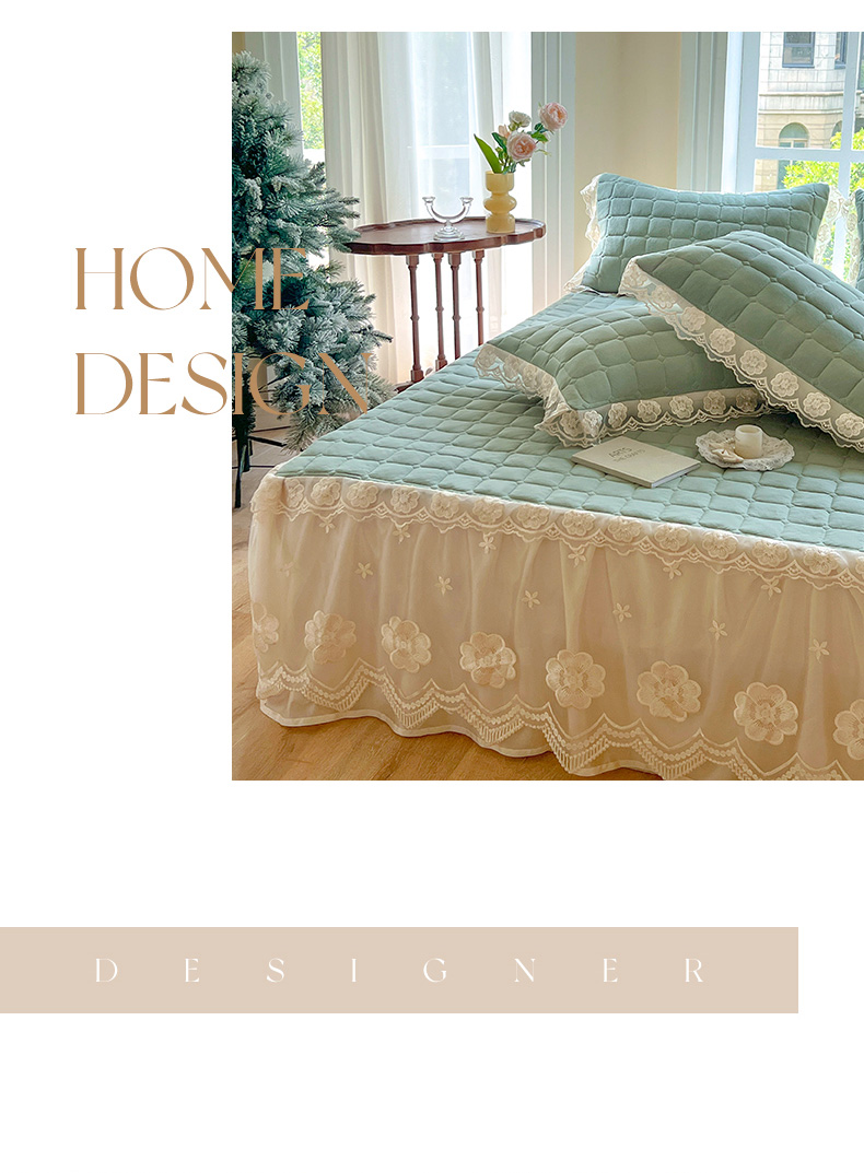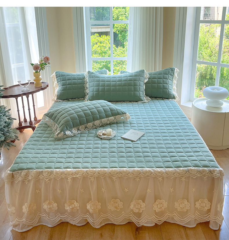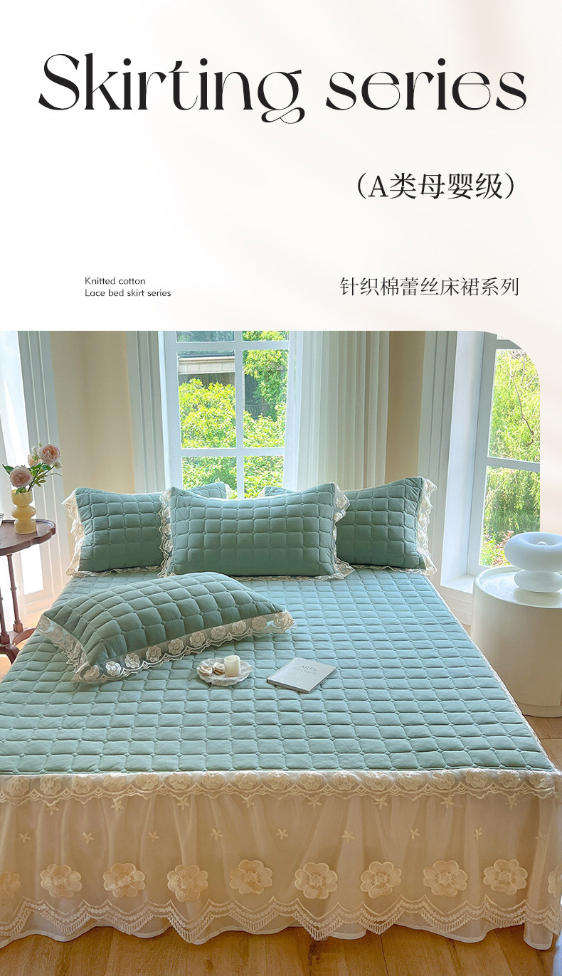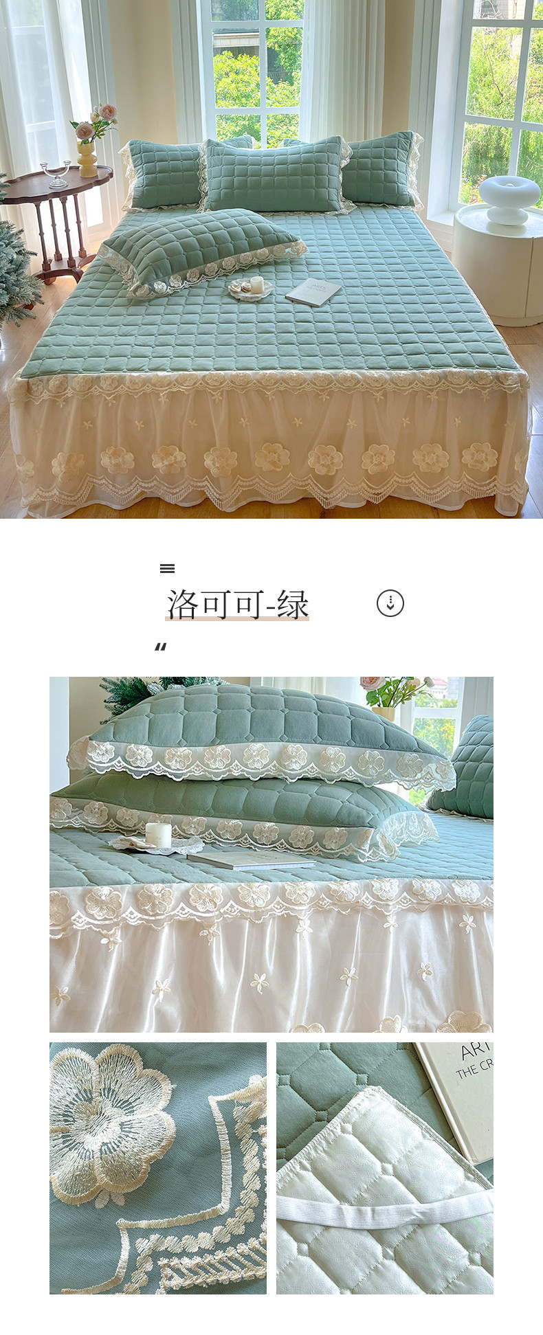 商品名称:豪美鑫 2025新款A类针织棉蕾丝床裙系列 洛可可-绿
