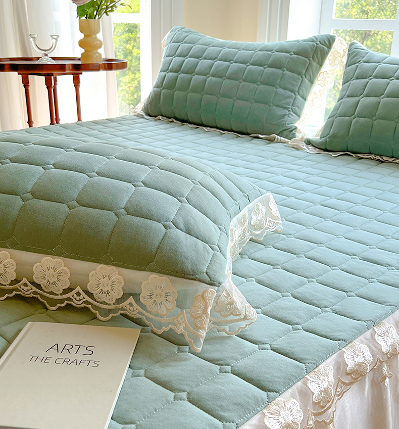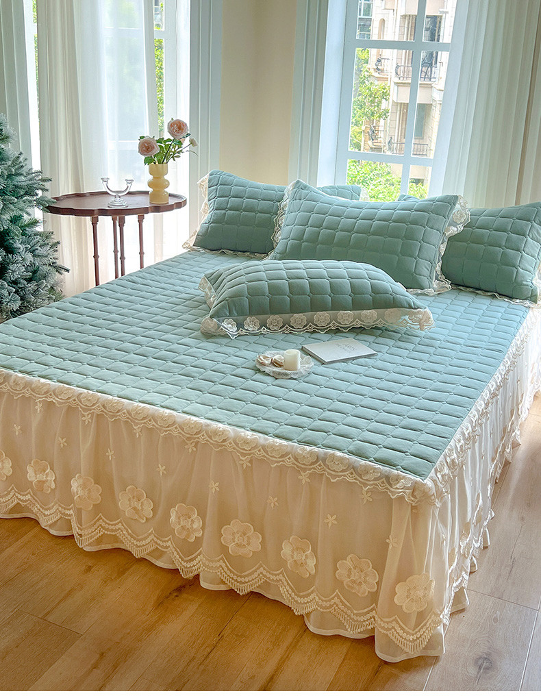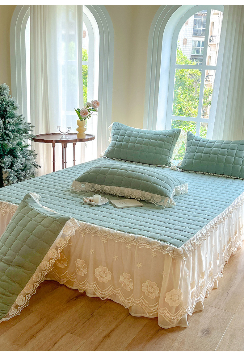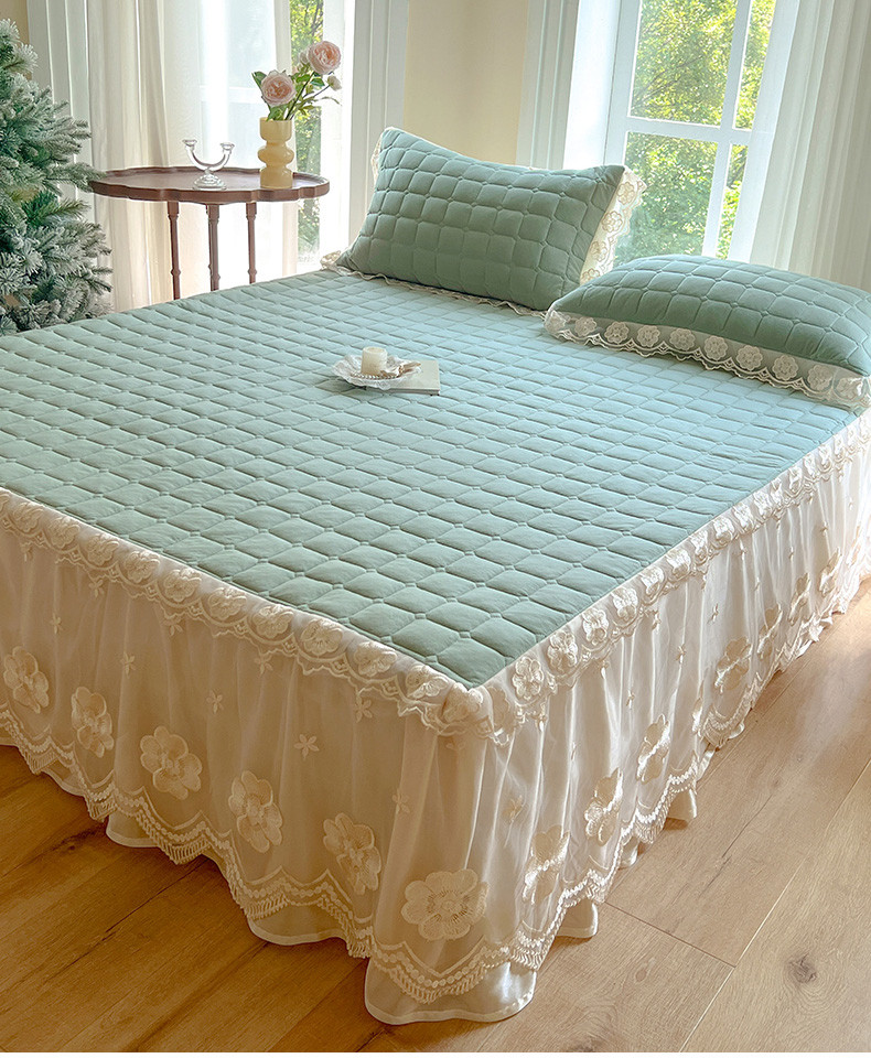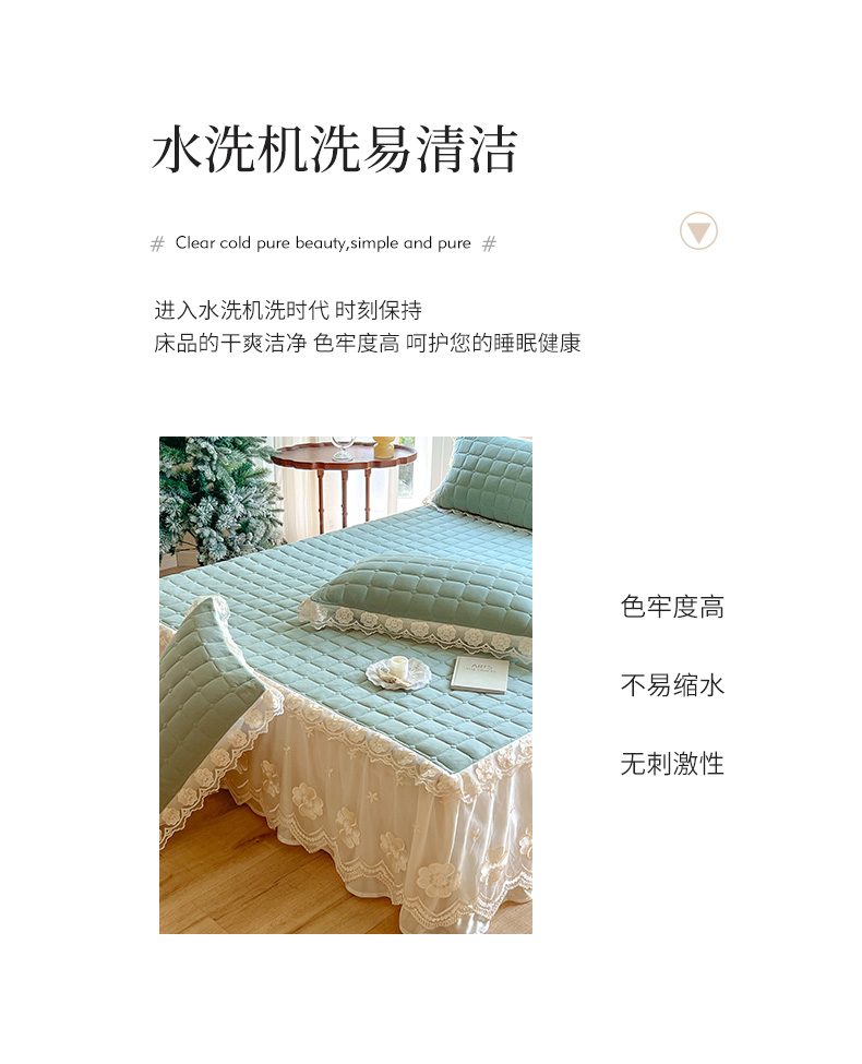 商品名称:豪美鑫 2025新款A类针织棉蕾丝床裙系列 洛可可-绿