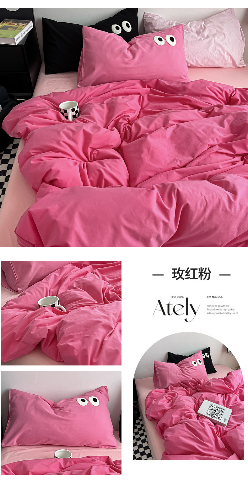 当前位置: 91家纺网 > 商品网购 > 床品套件 > 四件套 > 水洗棉四件套 > 盼季家纺 2023新款纯色水洗棉大眼睛煤球四件套 大眼-树莓红混搭