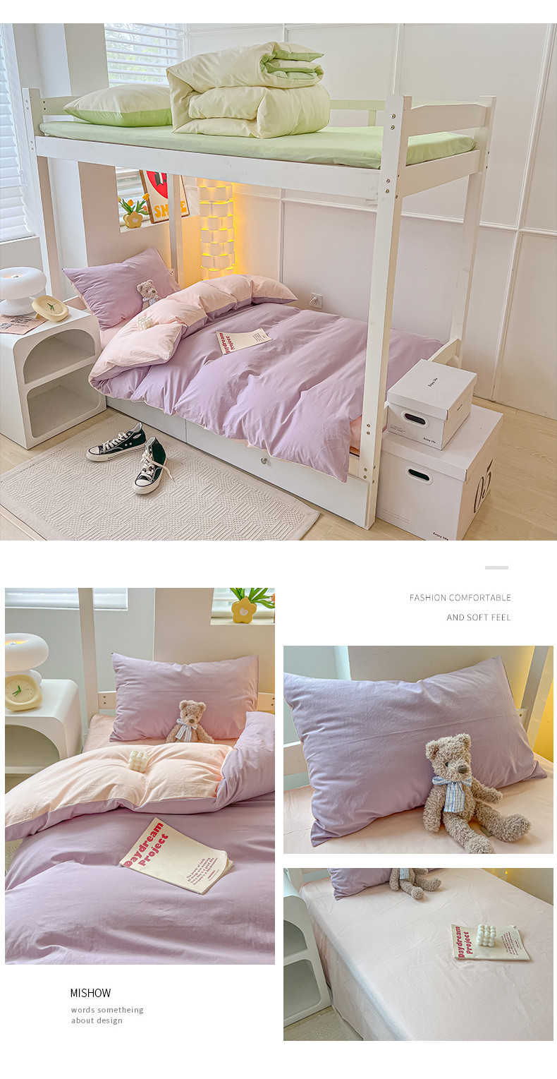 当前位置: 91家纺网 > 商品网购 > 床品套件 > 四件套 > 水洗棉四件套 > 盼季 2023新款无印风格子纯色水洗棉四件套 奶粉泡泡紫