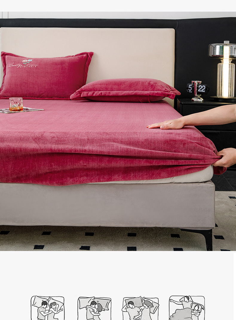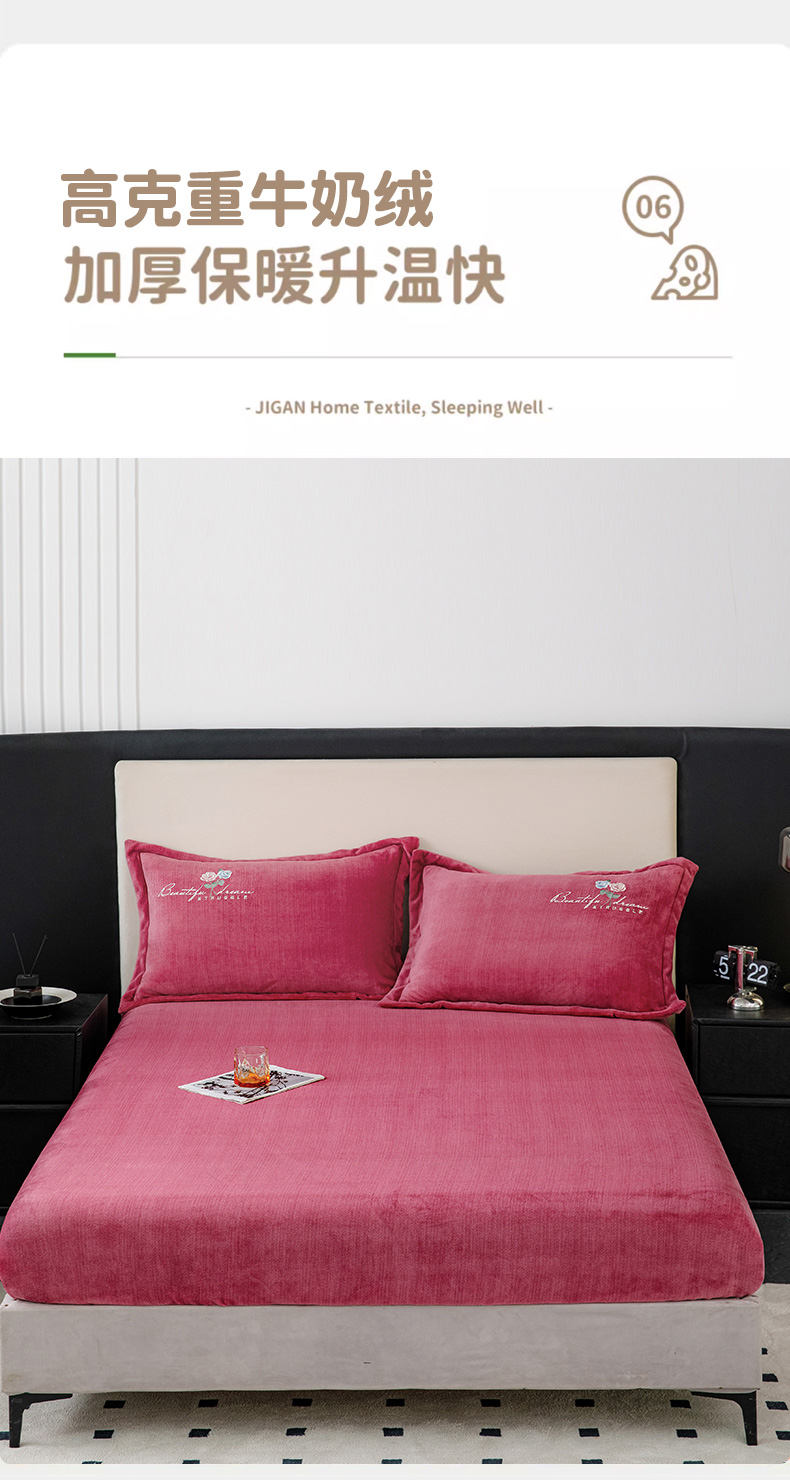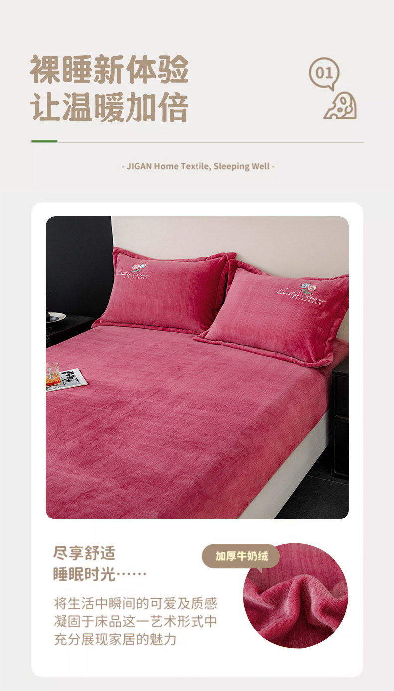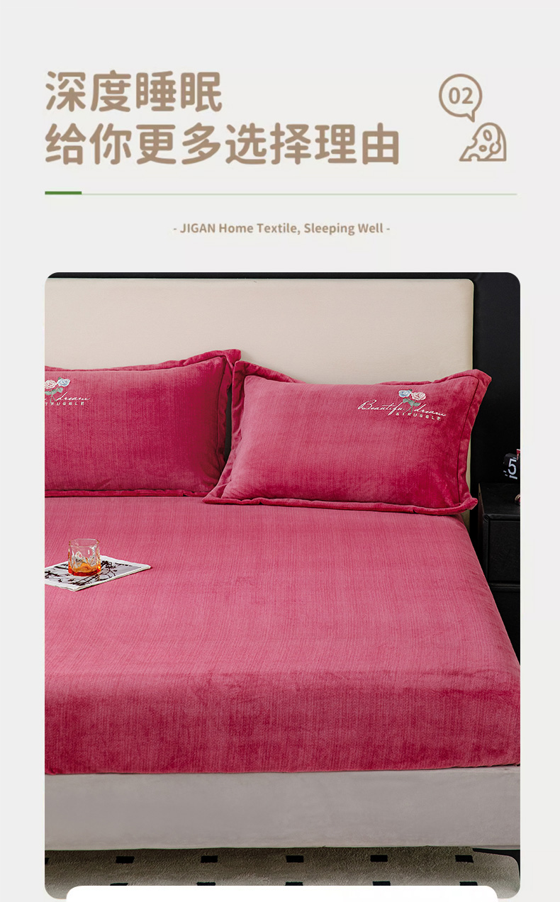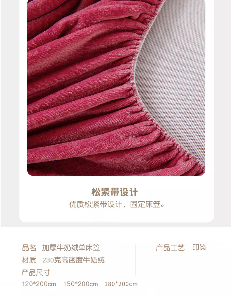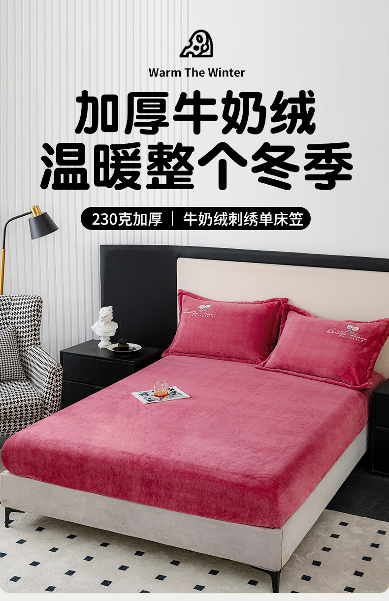 • 91家纺网 家纺一手货源 找家纺 新款230克高克重肌理纹牛奶绒单床笠可定做尺寸 肌理纹绣花-酒红