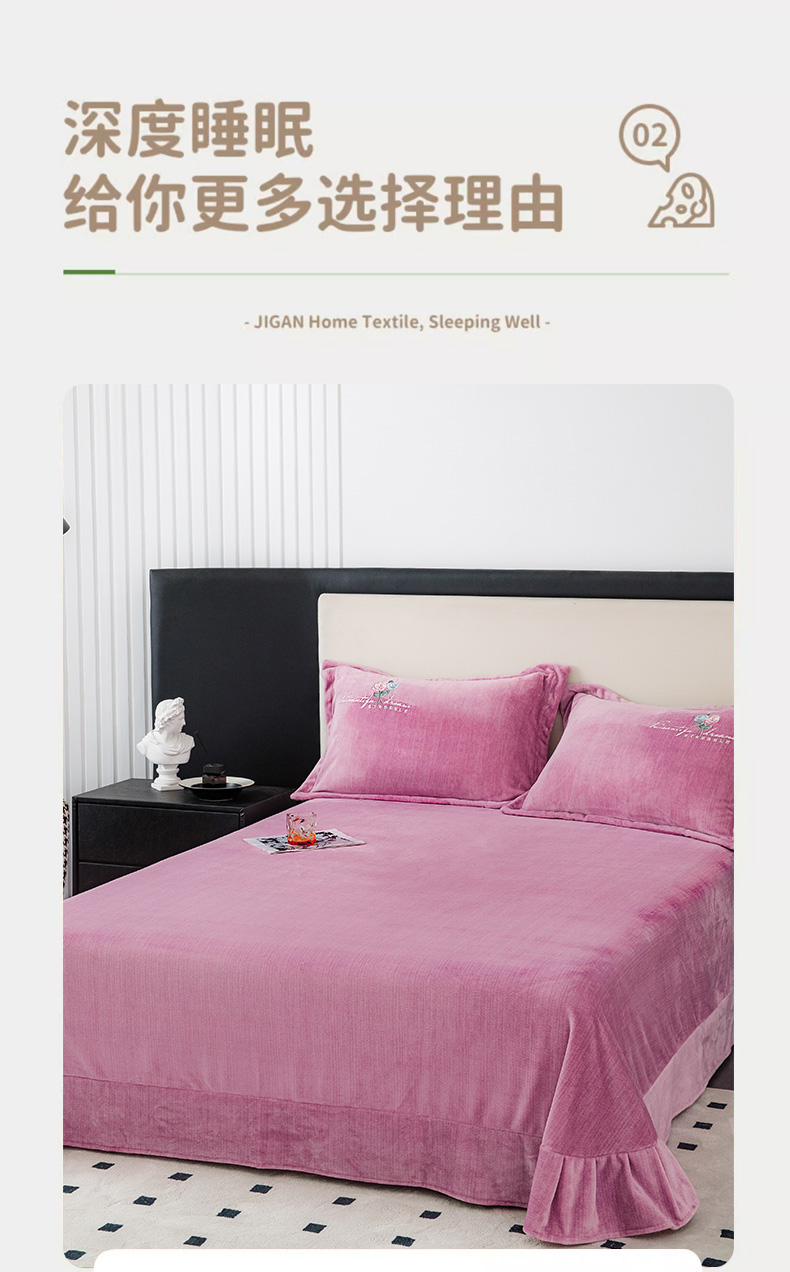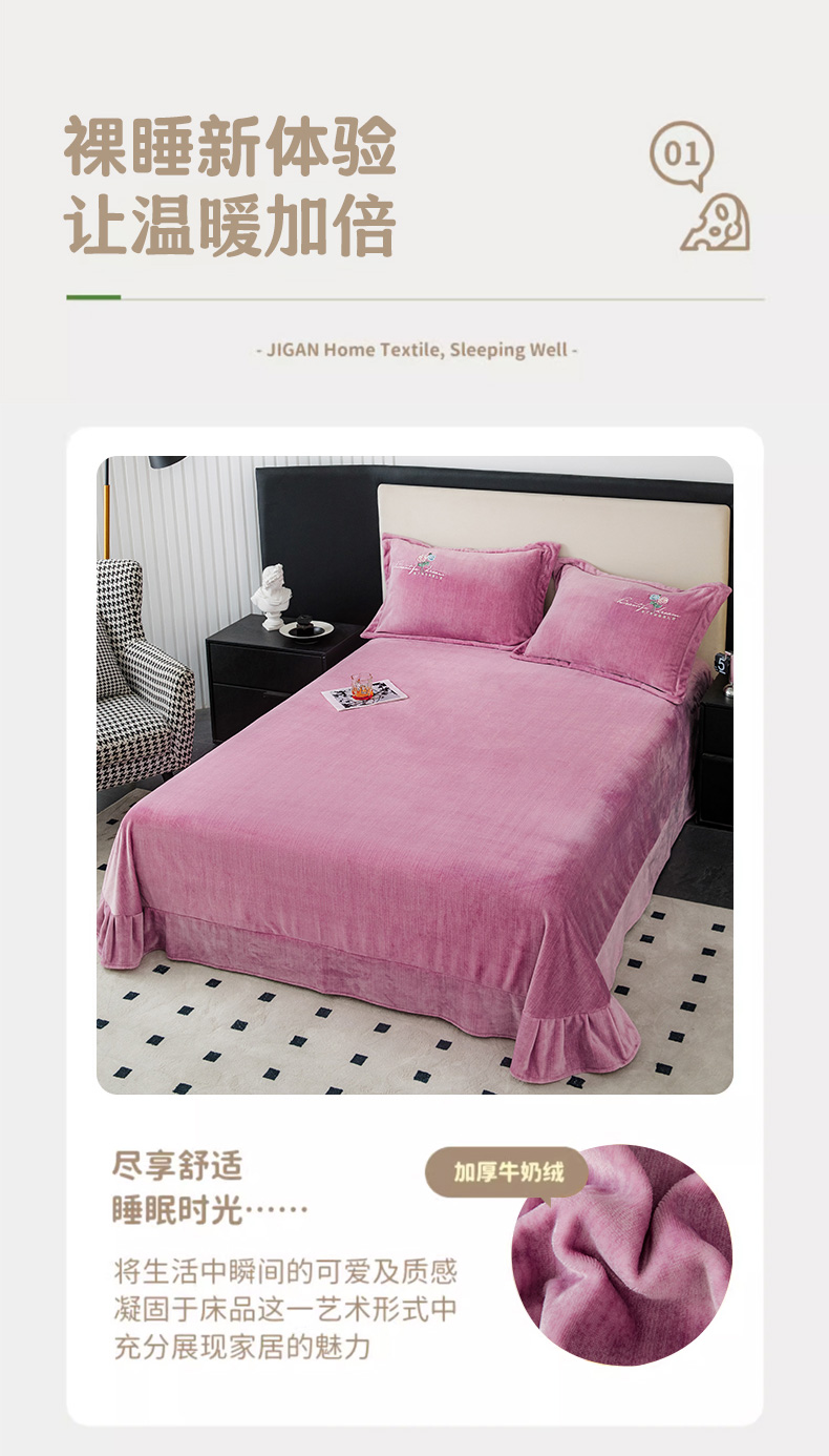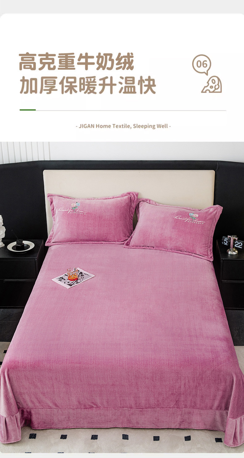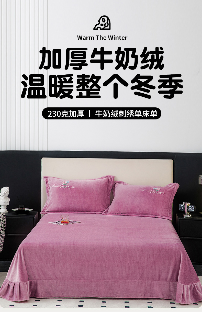 新款230克纯色加厚肌理纹牛奶绒单床单肌理纹绣花-紫色