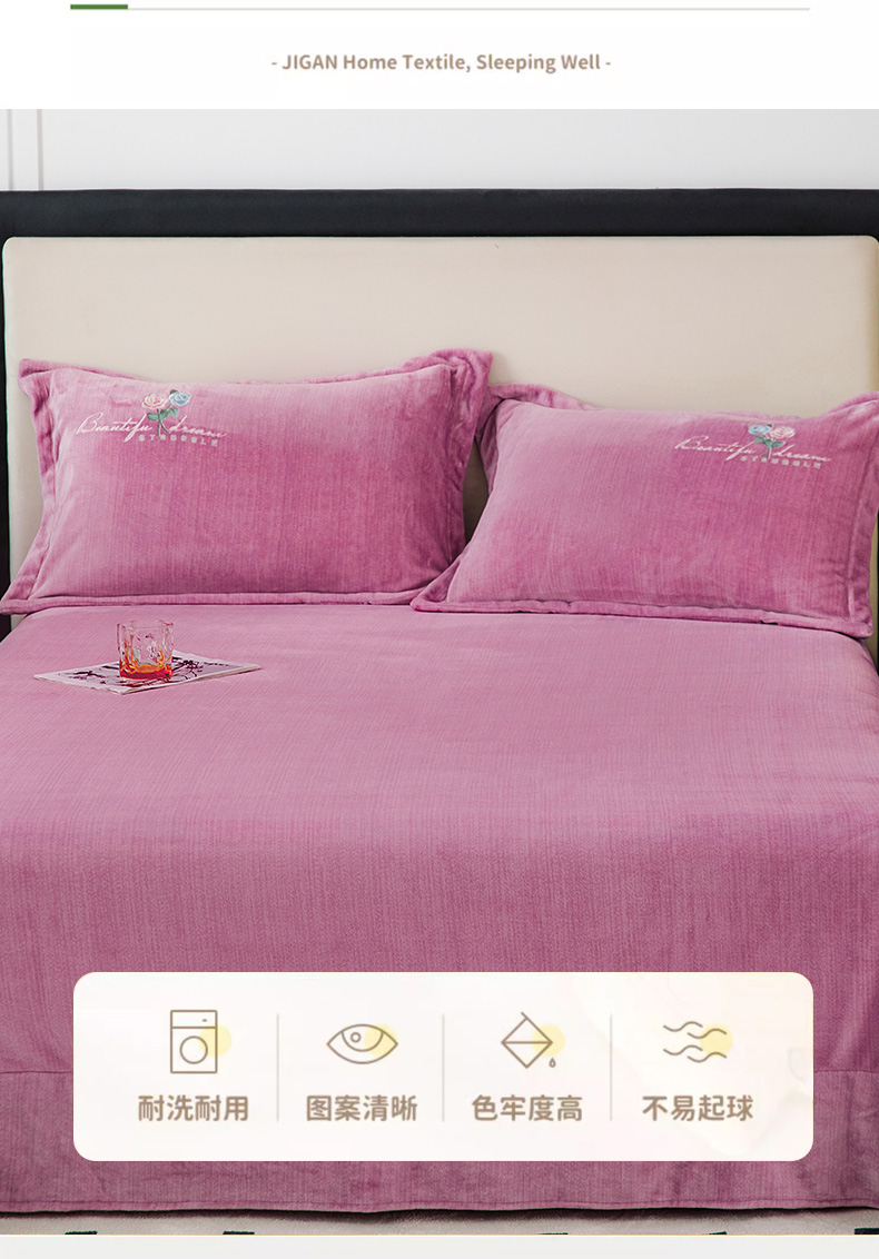 商品名称:新款230克纯色加厚肌理纹牛奶绒单床单肌理纹绣花-紫色