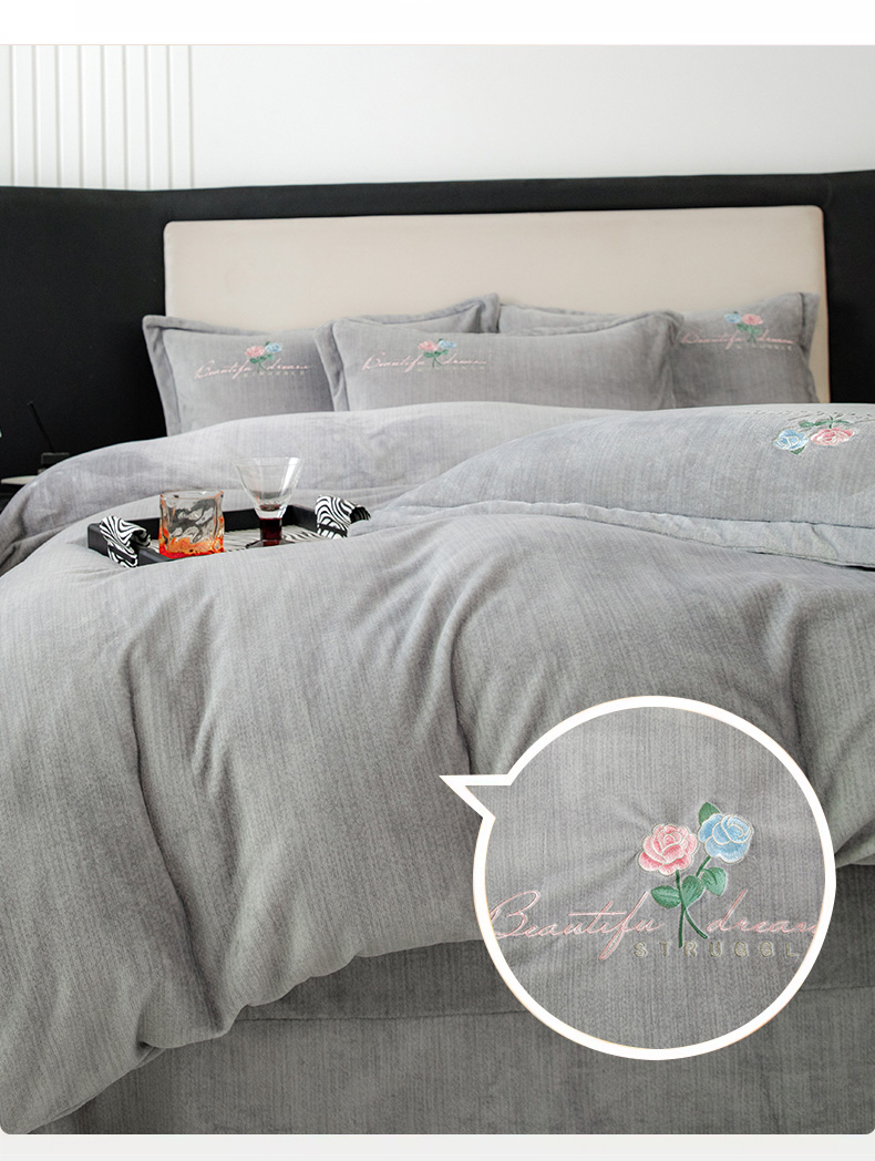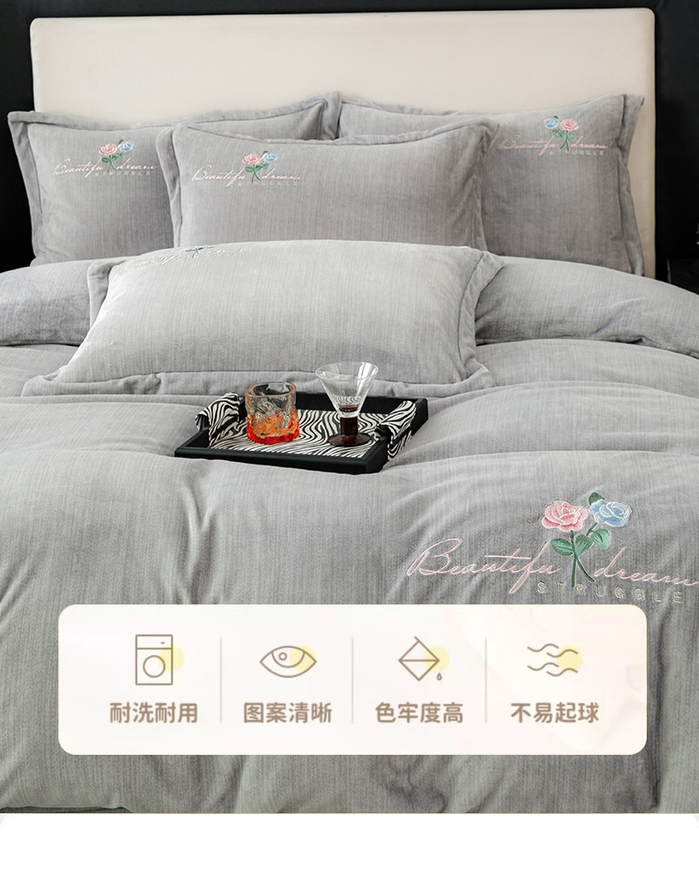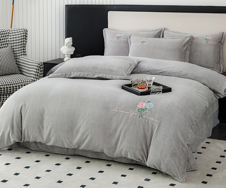 当前位置: 91家纺网 > 商品网购 > 床品套件 > 四件套 > 牛奶绒四件套 > 新款230克肌理纹绣花牛奶绒四件套可定做 肌理纹绣花-灰