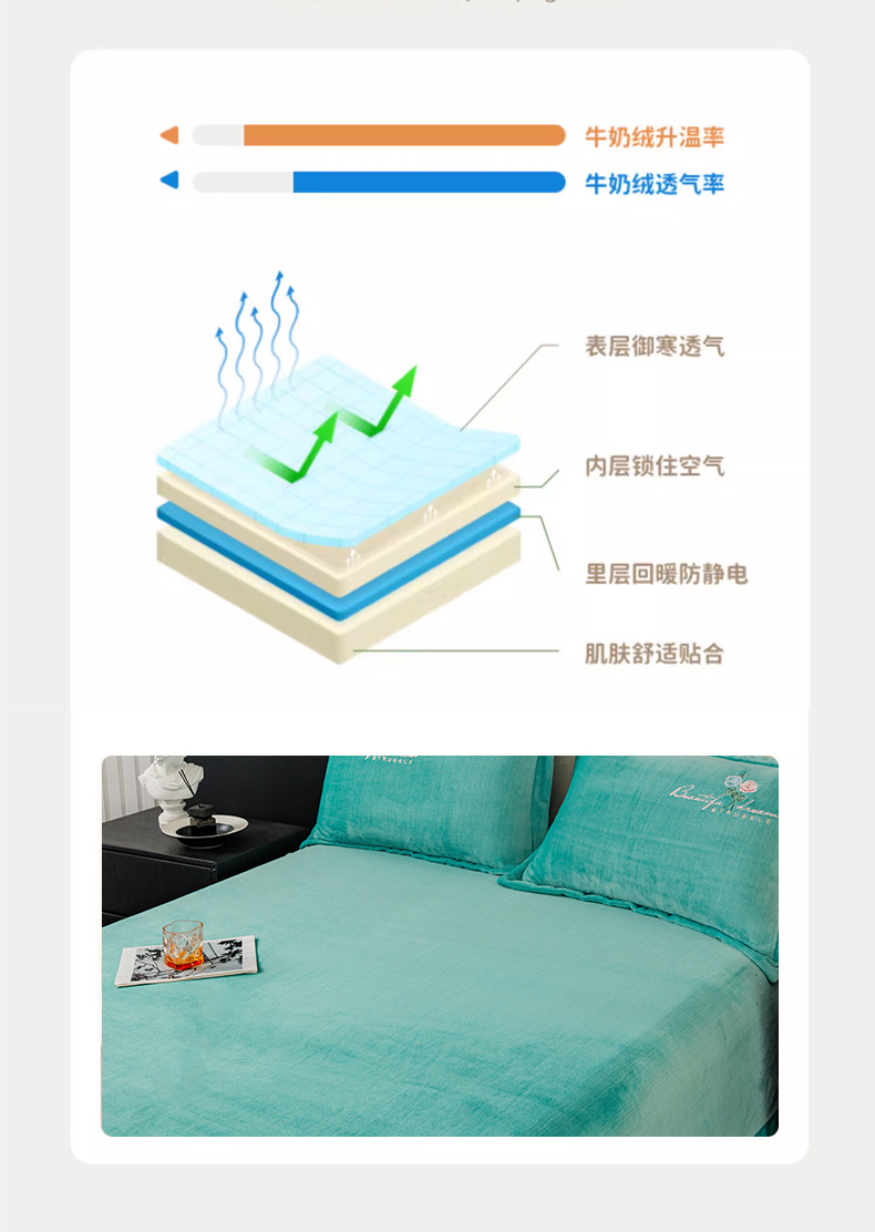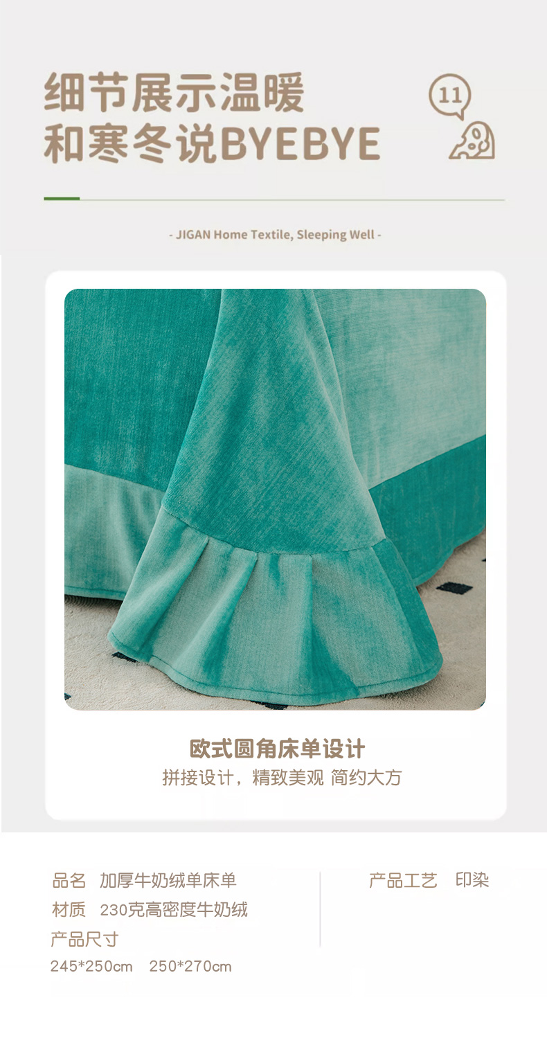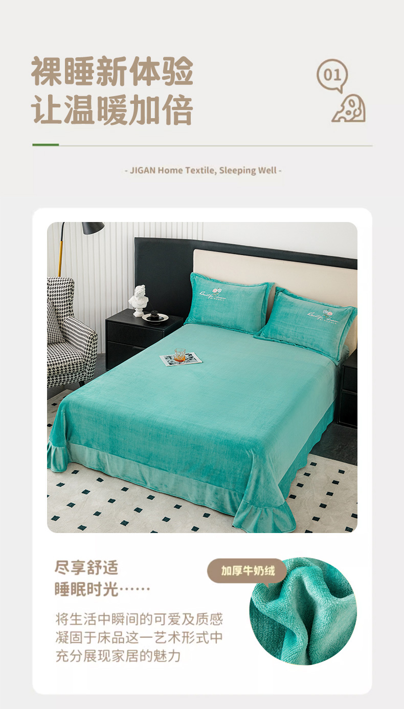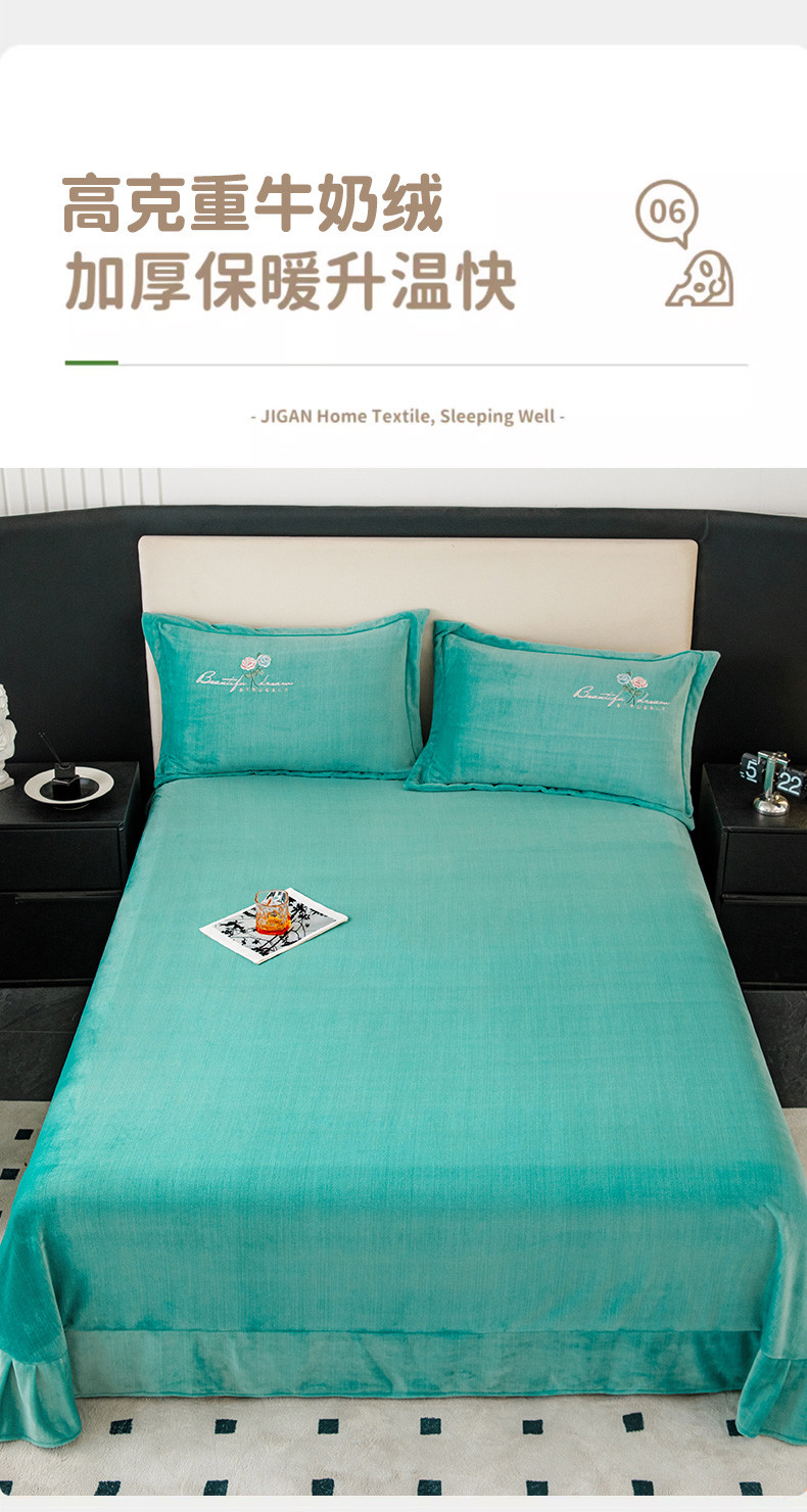 新款230克纯色加厚肌理纹牛奶绒单床单肌理纹绣花-绿色