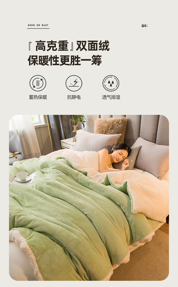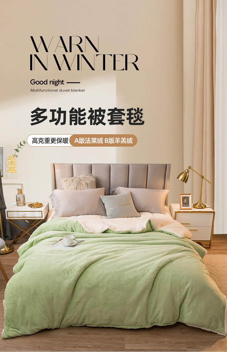 商品名称:简爱 2025新款法莱绒羊羔绒多功能被套毯 浅绿