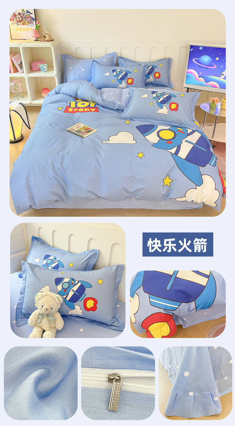 商品名称:孩子王家纺 2023新款全棉卡通学生活性印花大版工艺款四件套 快乐火箭