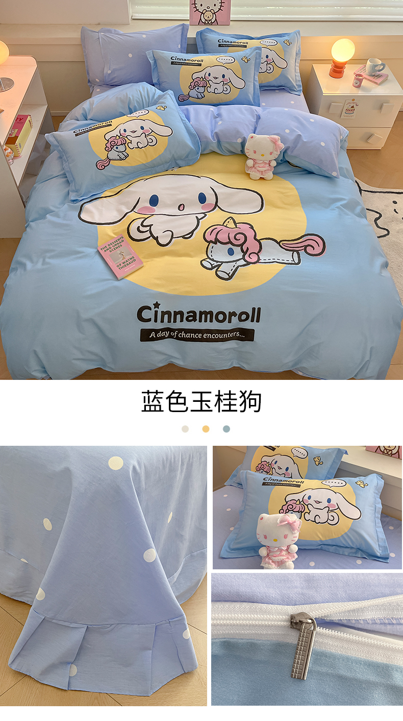 当前位置: 91家纺网 > 商品网购 > 床品套件 > 四件套 > 全棉普通四件套 > 孩子王家纺 2023新款三丽鸥系列全棉活性大版印花卡通学生四件套 蓝色玉桂狗