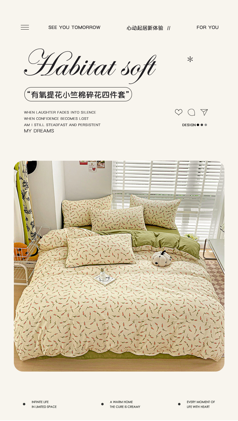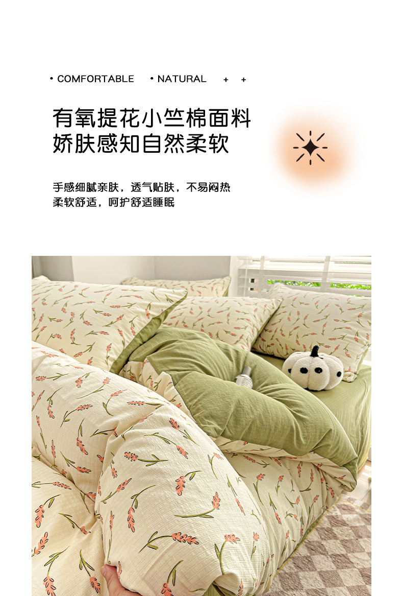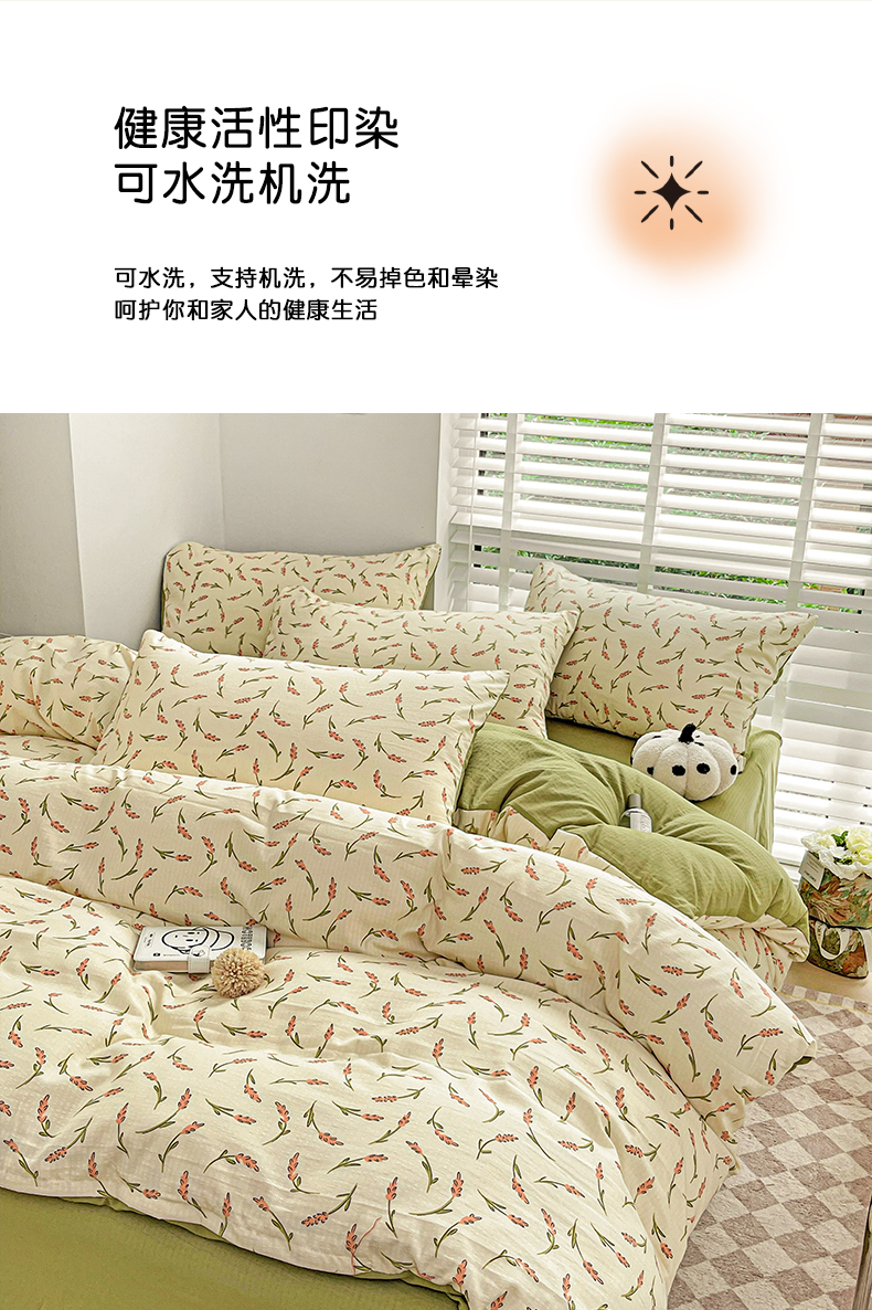 当前位置: 91家纺网 > 商品网购 > 床品套件 > 四件套 > 化纤普通四件套 > 新款超柔提花有氧小竺棉双层纱三件套四件套 清风