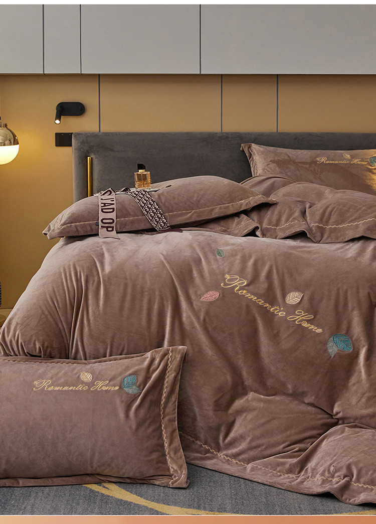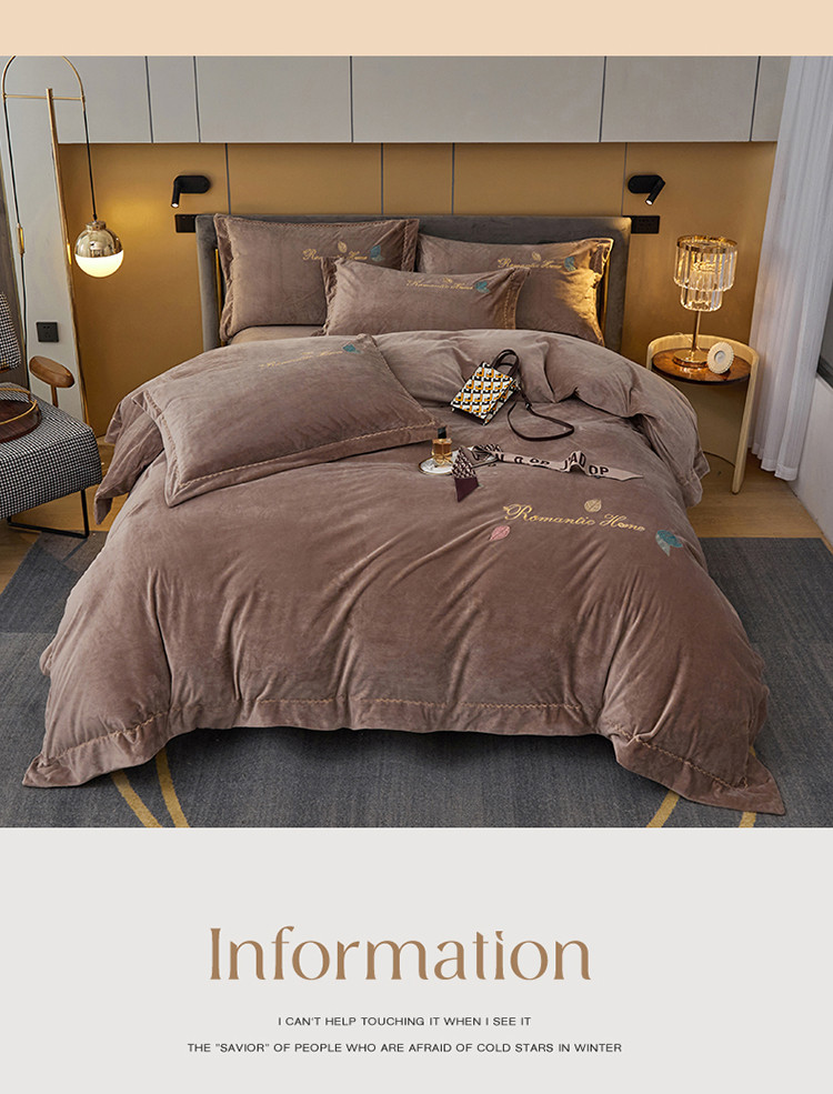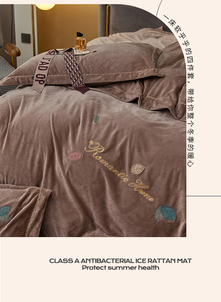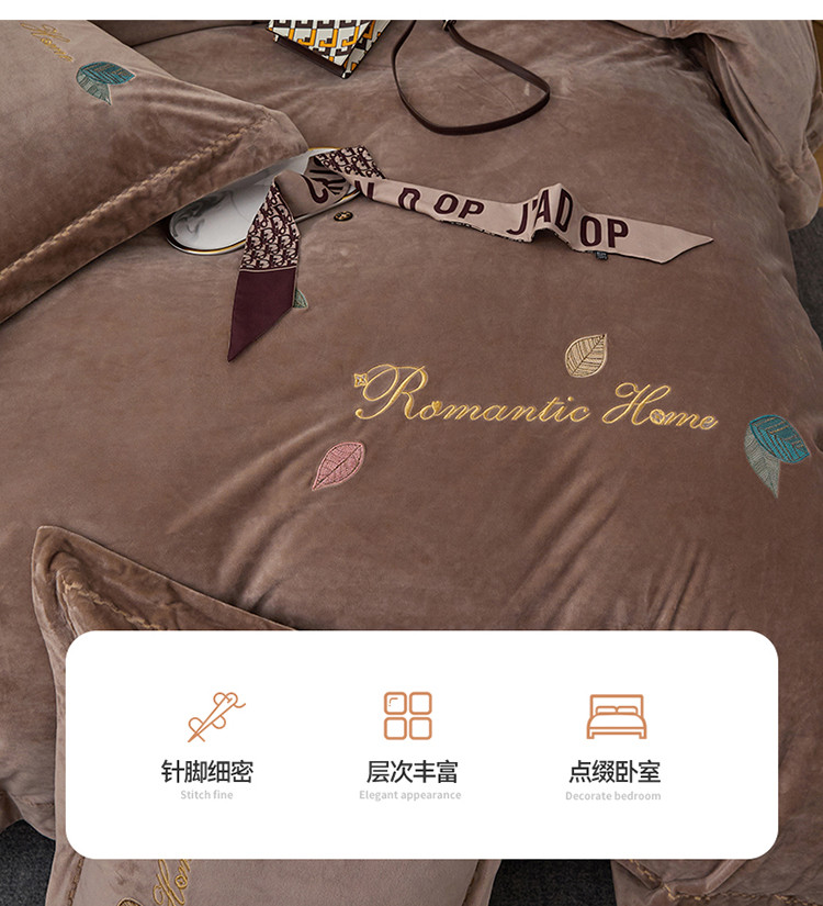 当前位置: 91家纺网 > 商品网购 > 床品套件 > 四件套 > 磨绒四件套 > 瑞驰家纺 2023新款A类婴儿绒刺绣加厚保暖四件套—艾丽莎 艾丽莎-卡其