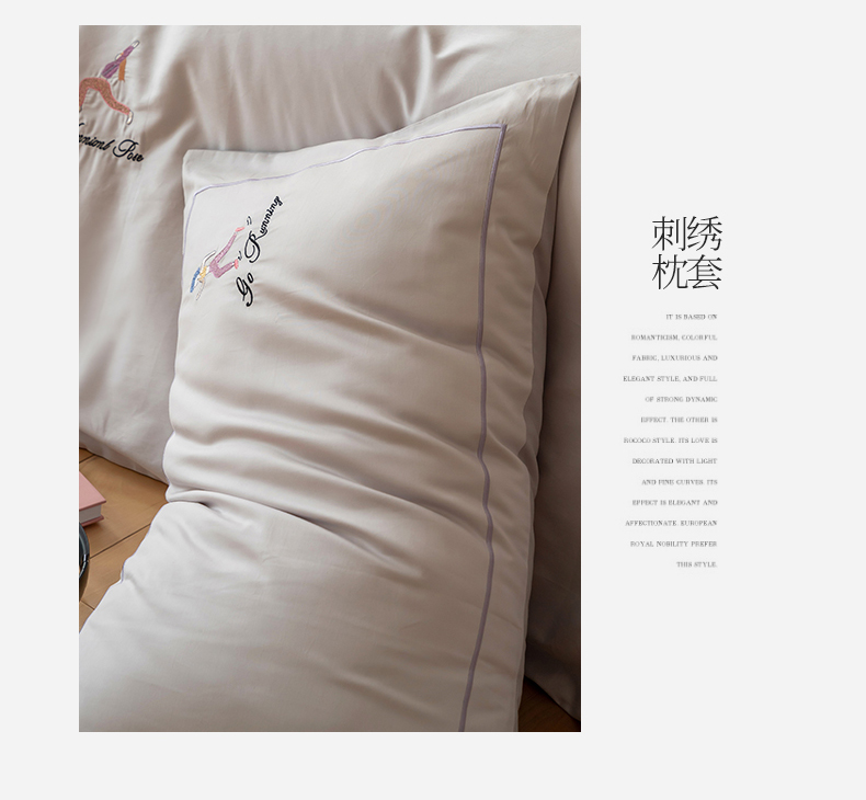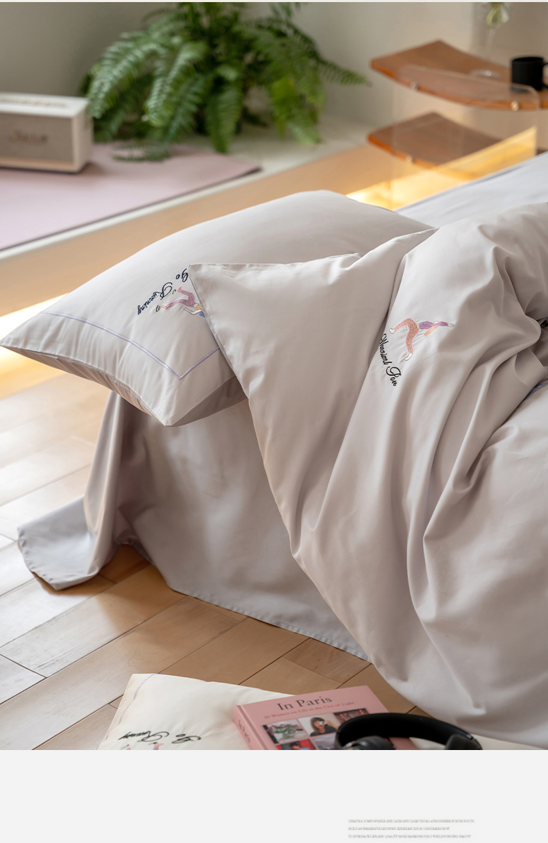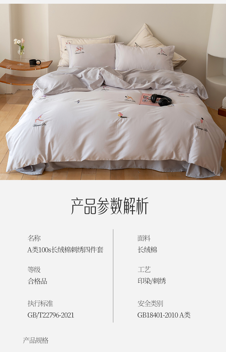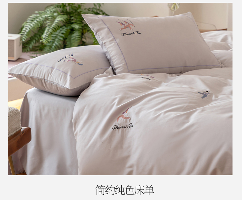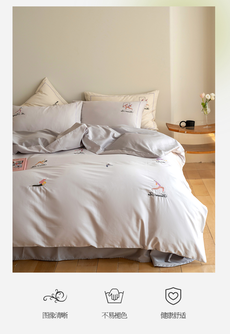 商品名称:名品优仓 2023新款高支高密长绒棉刺绣运动少女系列四件套 烟灰紫