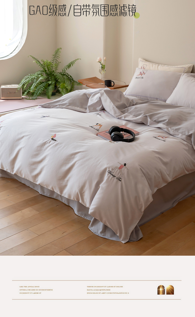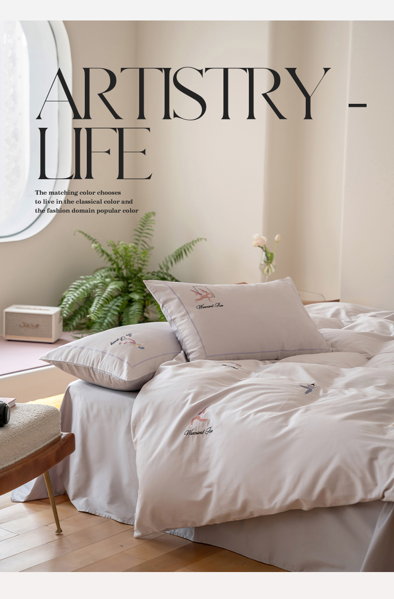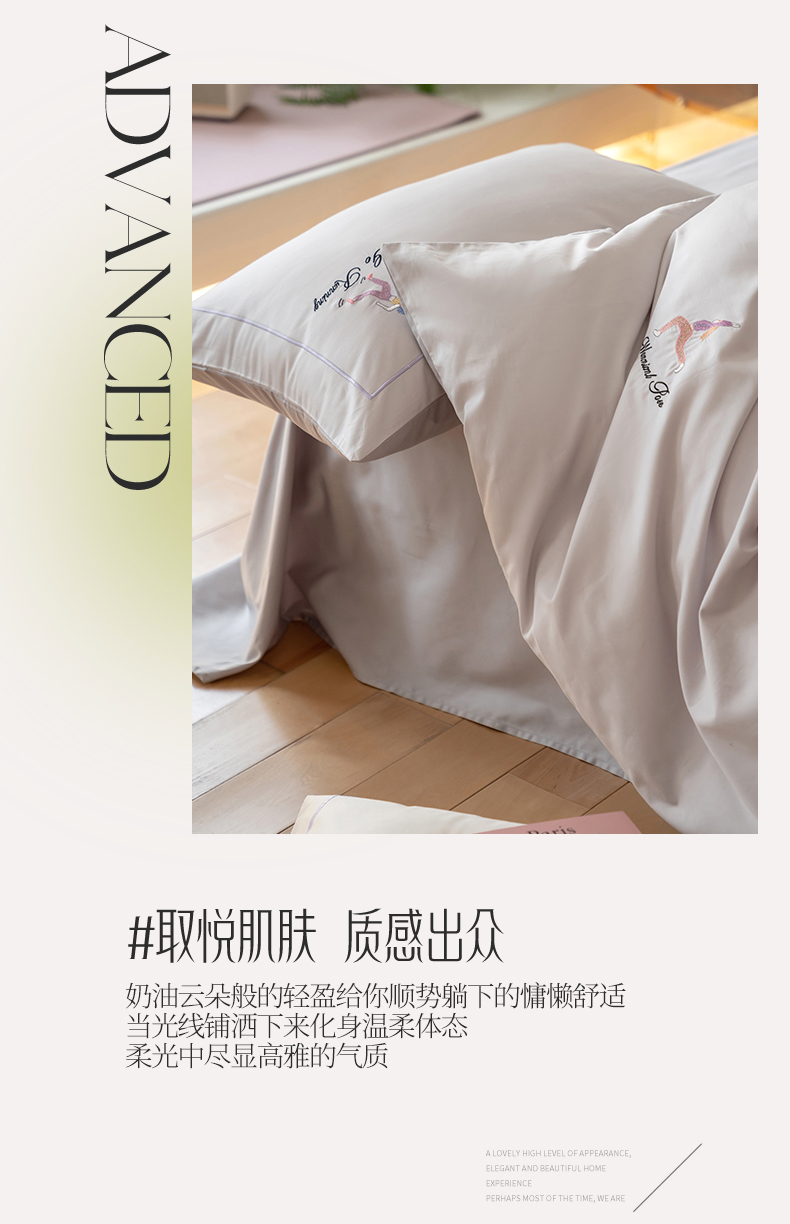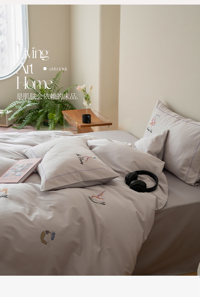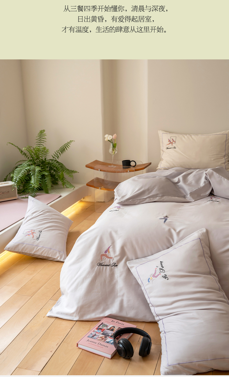 商品名称:名品优仓 2023新款高支高密长绒棉刺绣运动少女系列四件套 烟灰紫