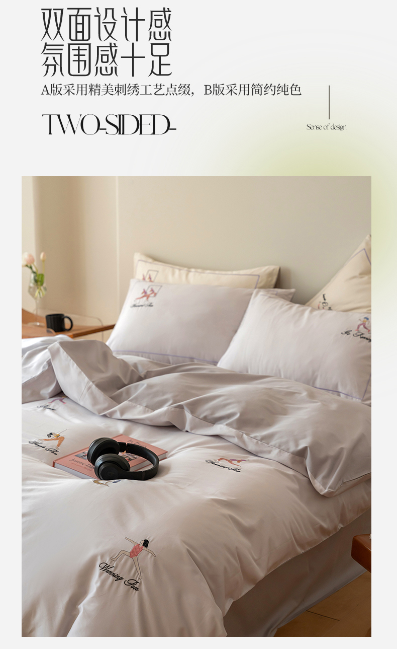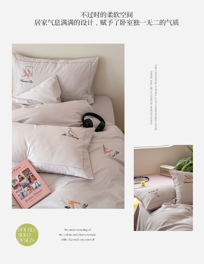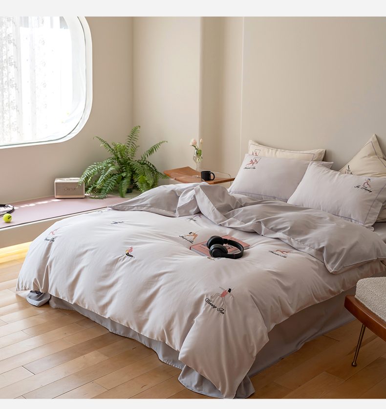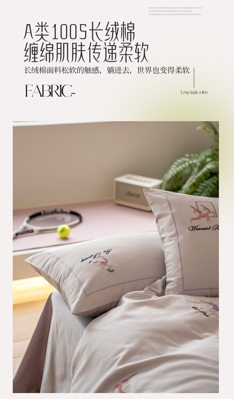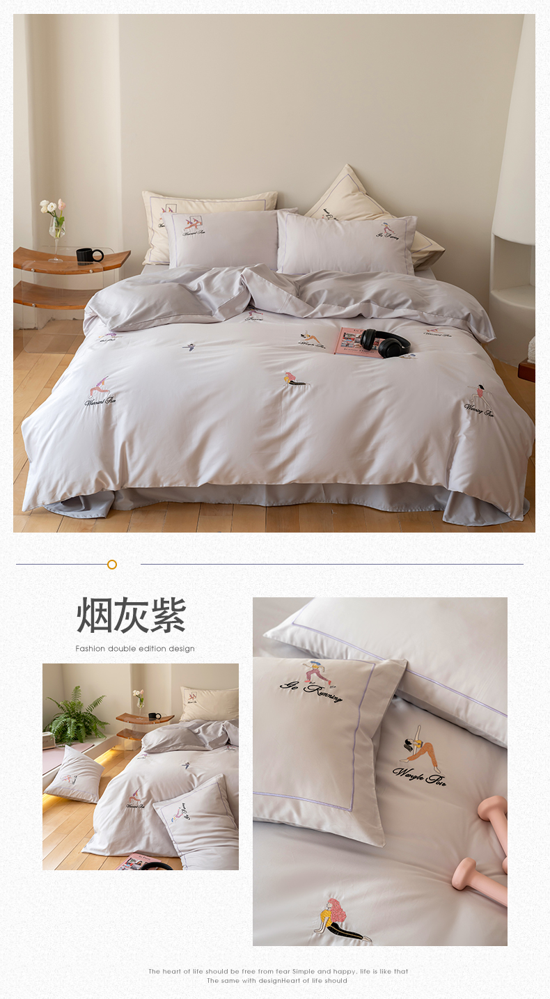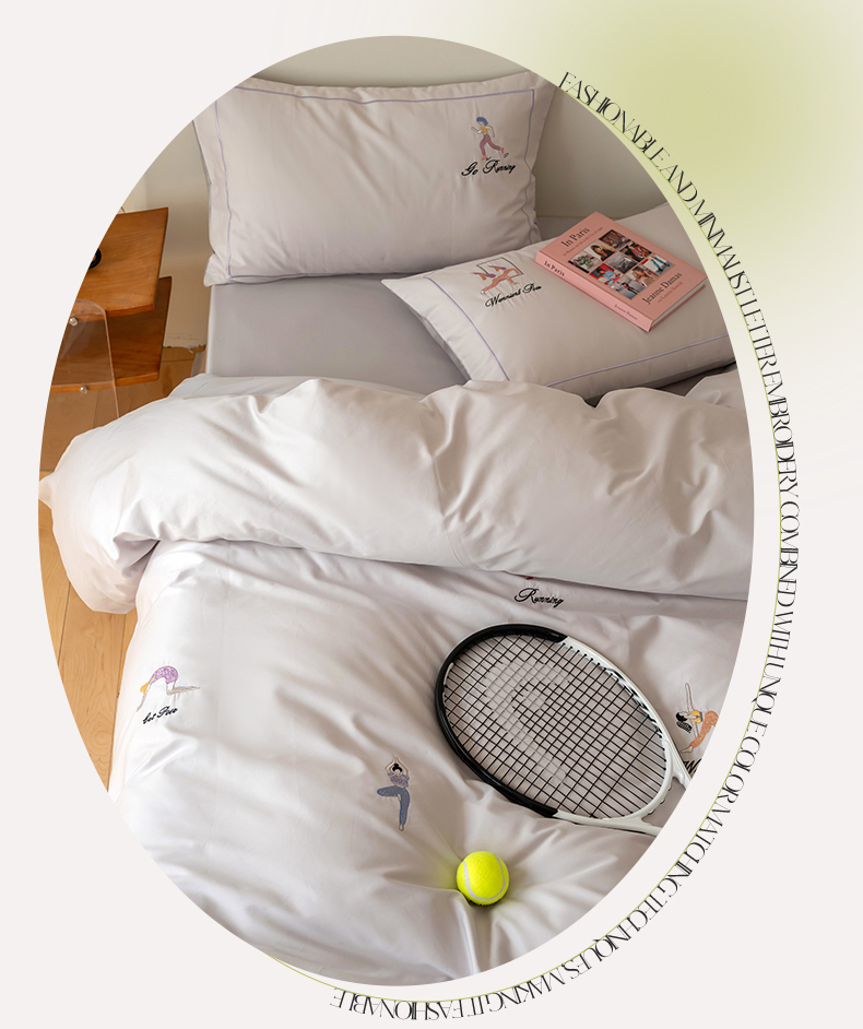 名品优仓 2023新款高支高密长绒棉刺绣运动少女系列四件套 烟灰紫