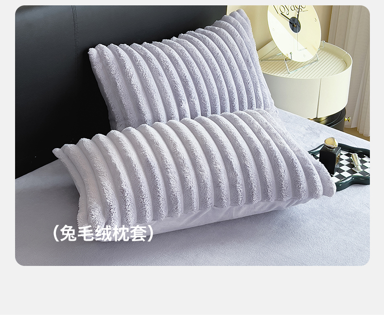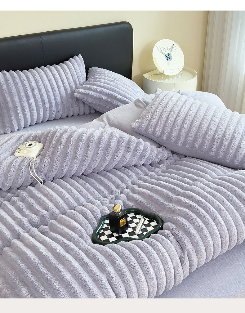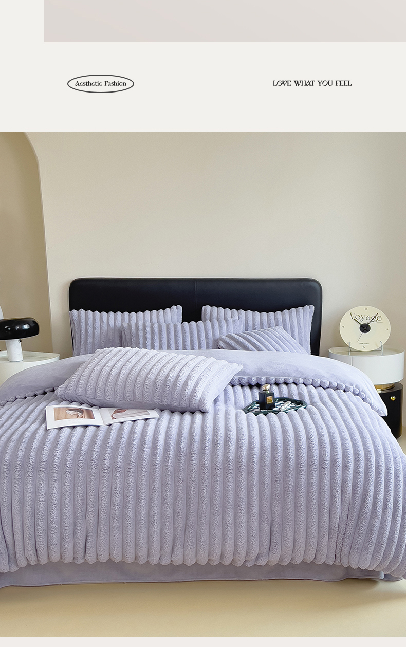 商品名称:丝幔 2025新款复古时尚AB面兔毛绒牛奶绒抽条四件套 兔毛紫C