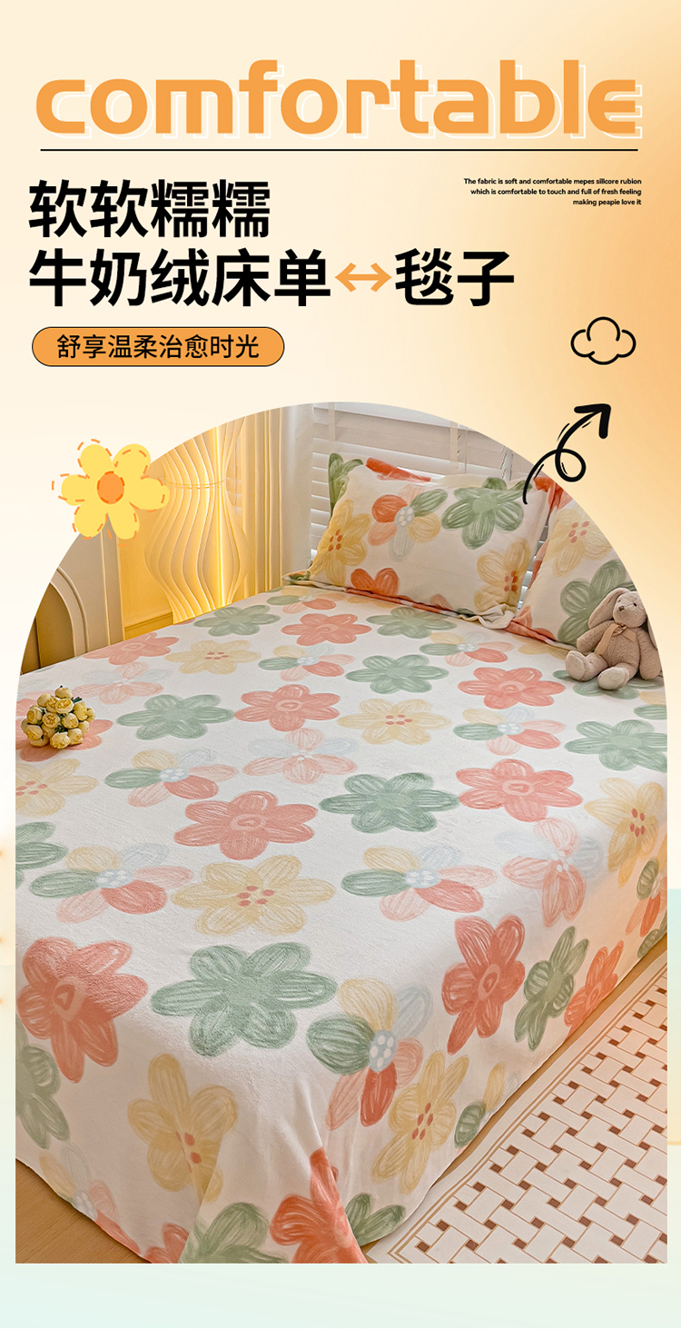 名兮家居 2023新款高克重牛奶绒床单 倾城