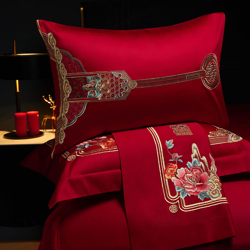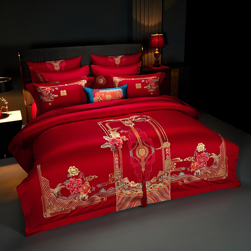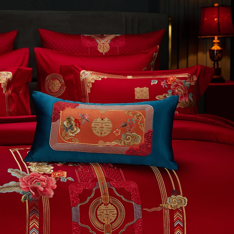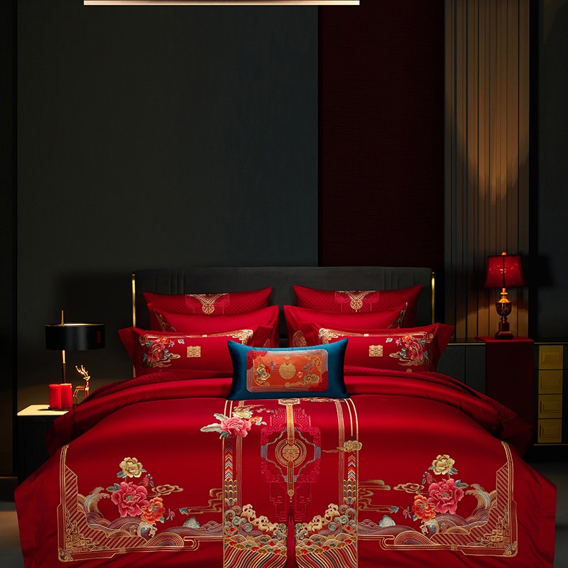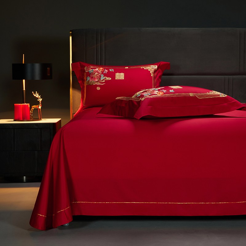 当前位置: 91家纺网 > 商品网购 > 床品套件 > 四件套 > 长绒棉四件套 > 缔缦 2023新款100s全棉长绒棉刺绣四件套婚庆 幸福婚礼(彩)