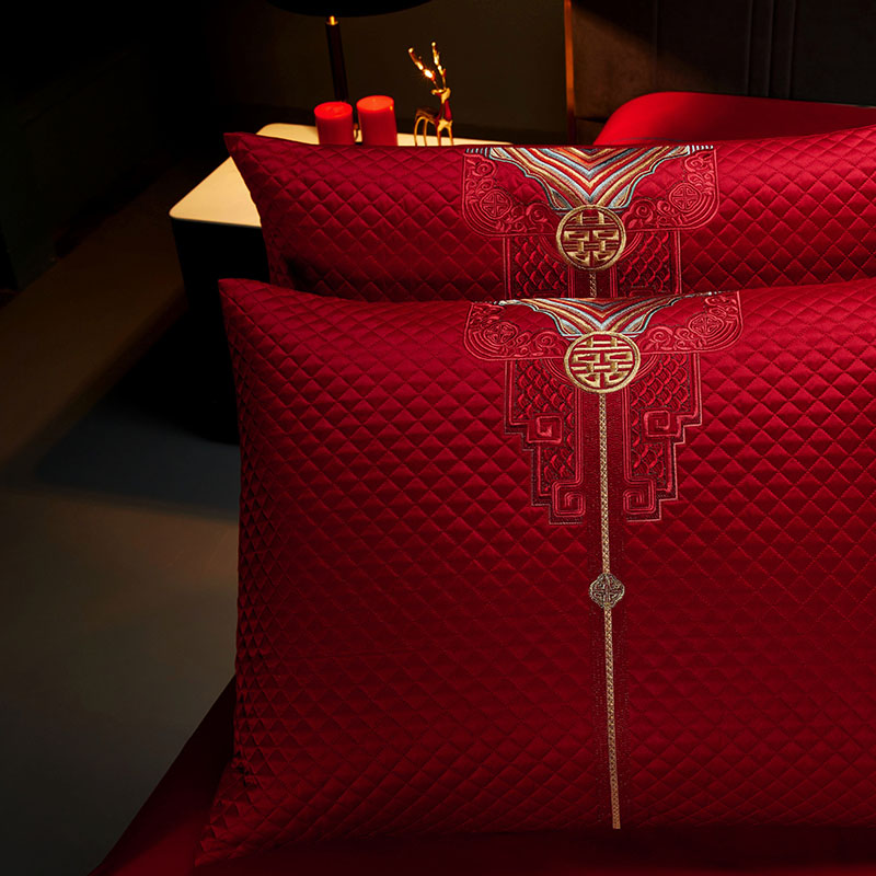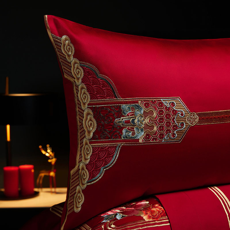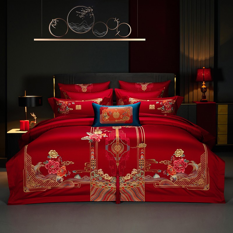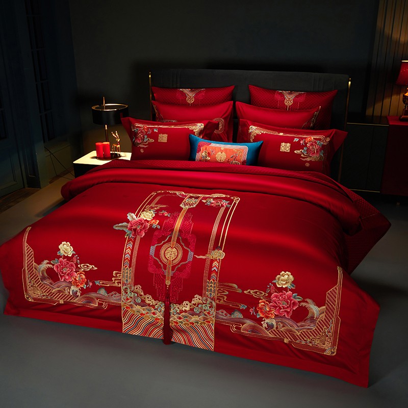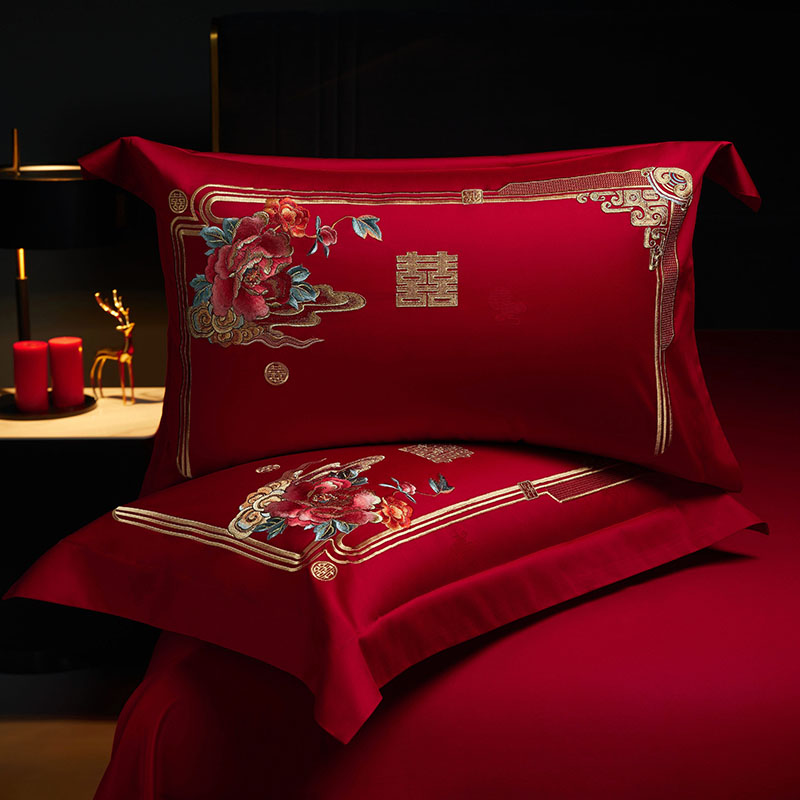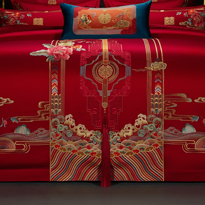当前位置: 91家纺网 > 商品网购 > 床品套件 > 四件套 > 长绒棉四件套 > 缔缦 2023新款100s全棉长绒棉刺绣四件套婚庆 幸福婚礼(彩)