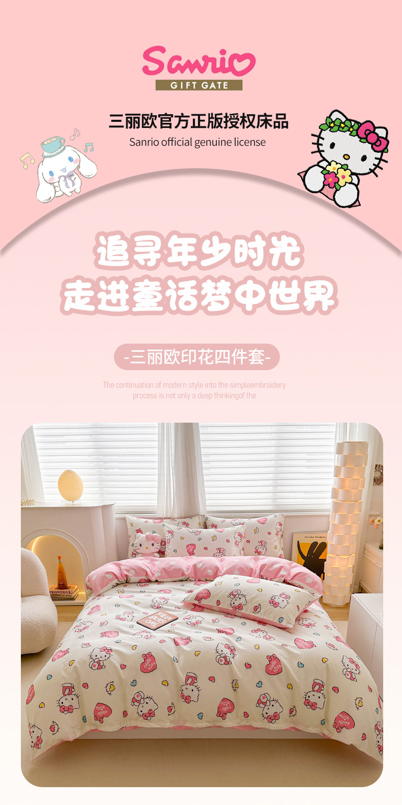 当前位置: 91家纺网 > 商品网购 > 床品套件 > 四件套 > 全棉普通四件套 > 爱丽丝 2024新款KT猫 三丽鸥全棉四件套套件系列 公主凯蒂