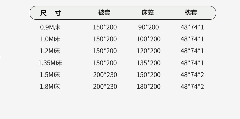 1.8m床笠款四件套 | ¥135.00 |
