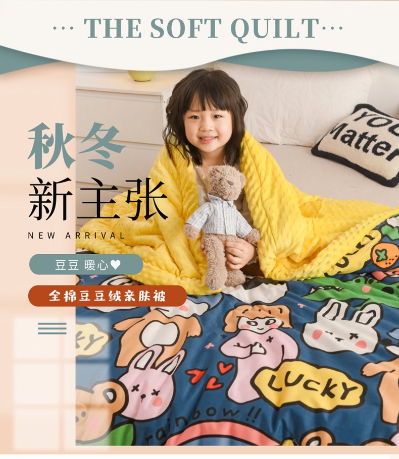 商品名称:十九色 2024新款双人全棉夹棉安抚豆豆毯豆豆被 手绘浪漫