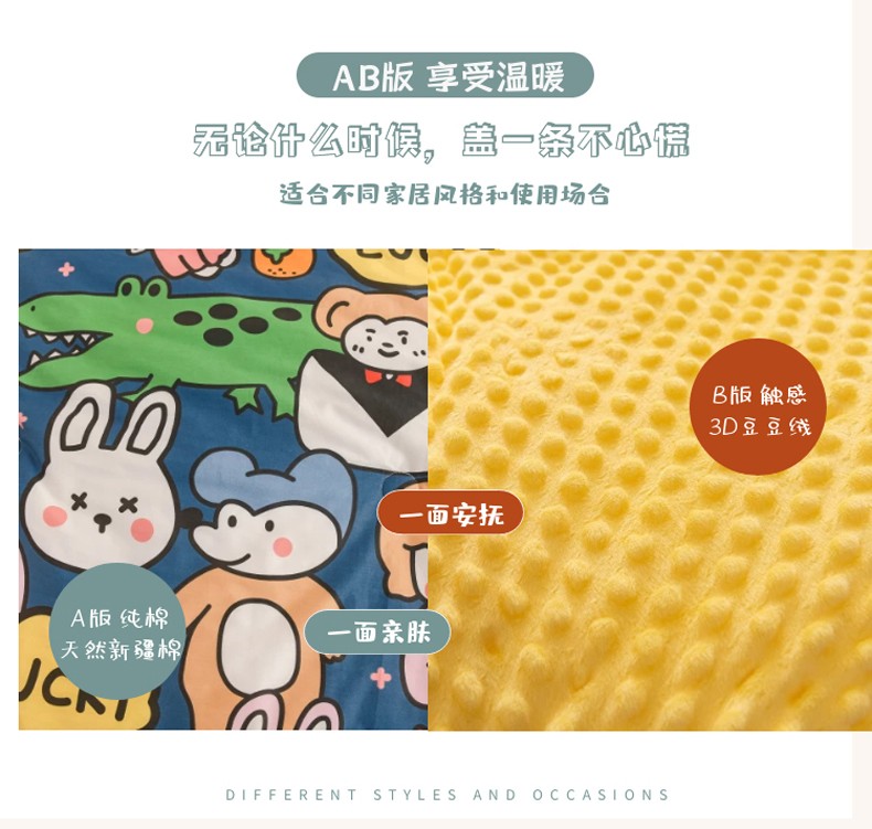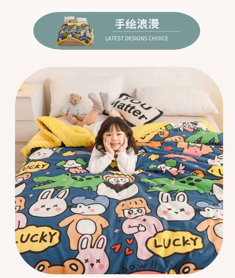 (总)十九色 2022新款夹棉豆豆被,动物世界,开心乐园,米奇,小公主,小恐龙,小苹果,小小交通队,游乐场,彩虹小马,草莓,滑板,糖果熊