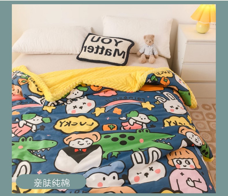 十九色 2024新款双人全棉夹棉安抚豆豆毯豆豆被 手绘浪漫