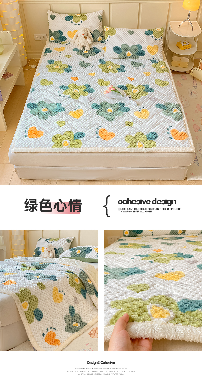 澳梵家居 2023新款豆豆绒夹棉床护垫 绿色心情