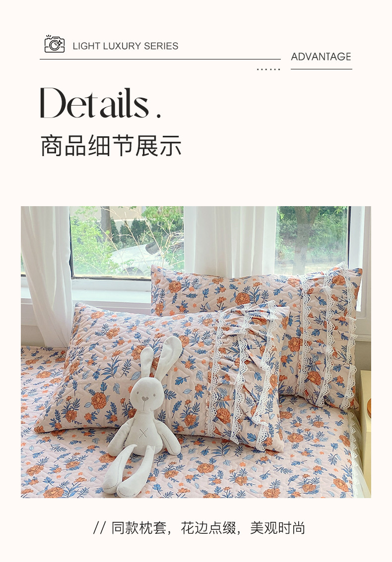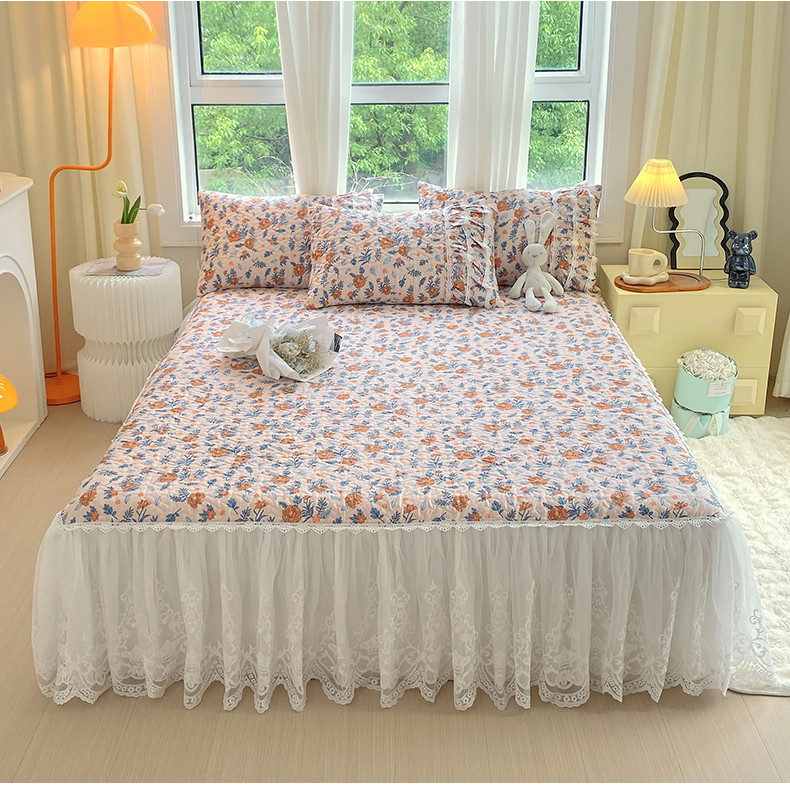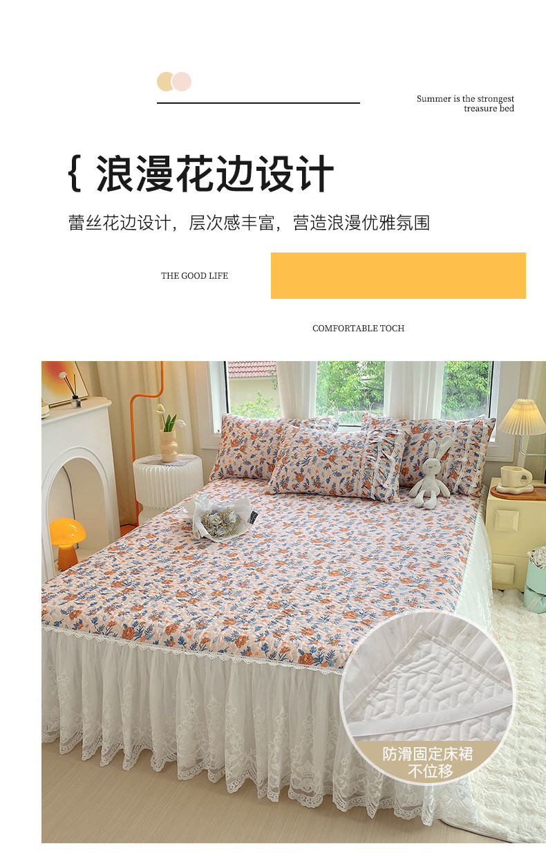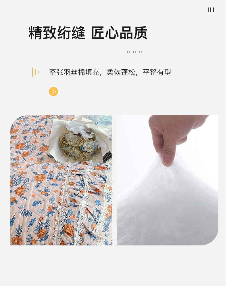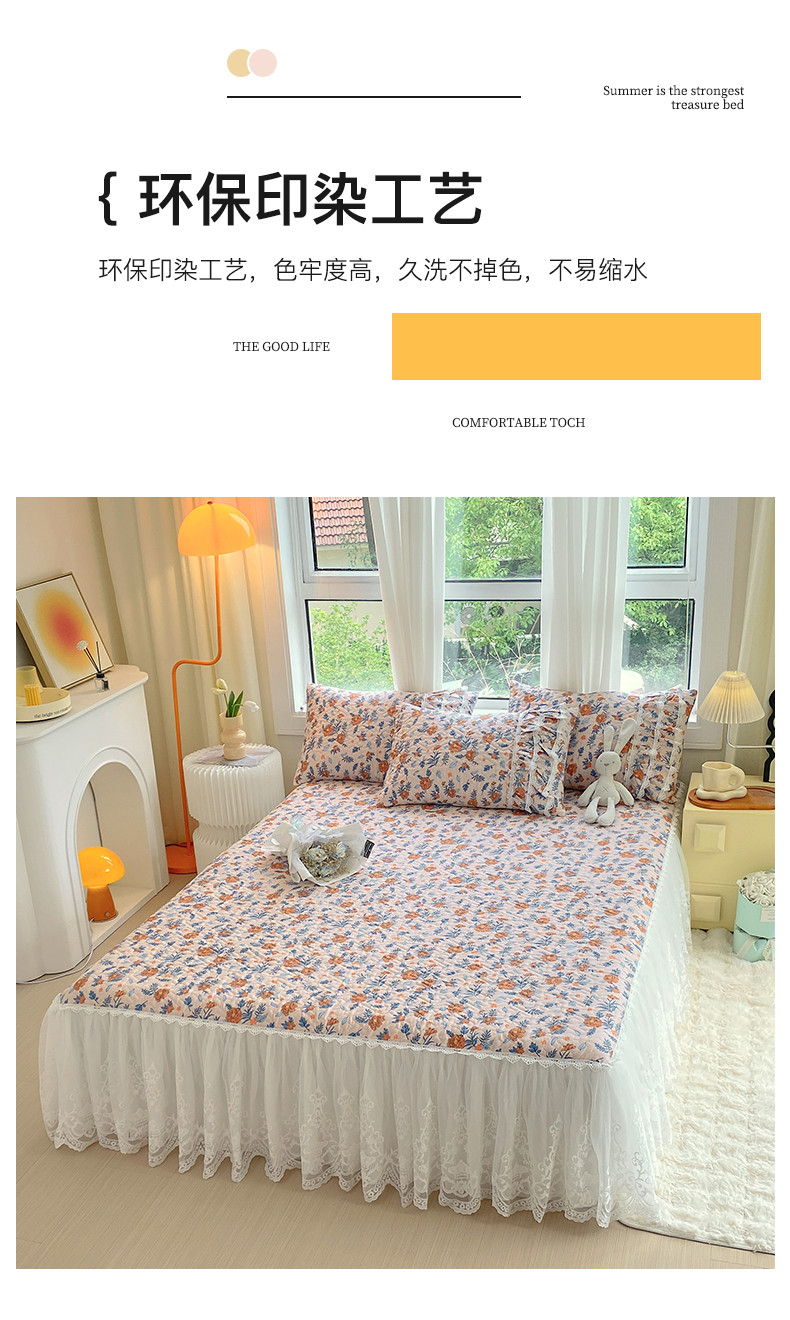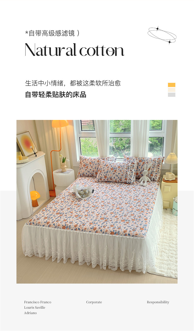 • 91家纺网 家纺一手货源 找家纺 罗艺轩 2024新款全棉蕾丝夹棉床裙巴黎春天系列三件套 丹尼斯