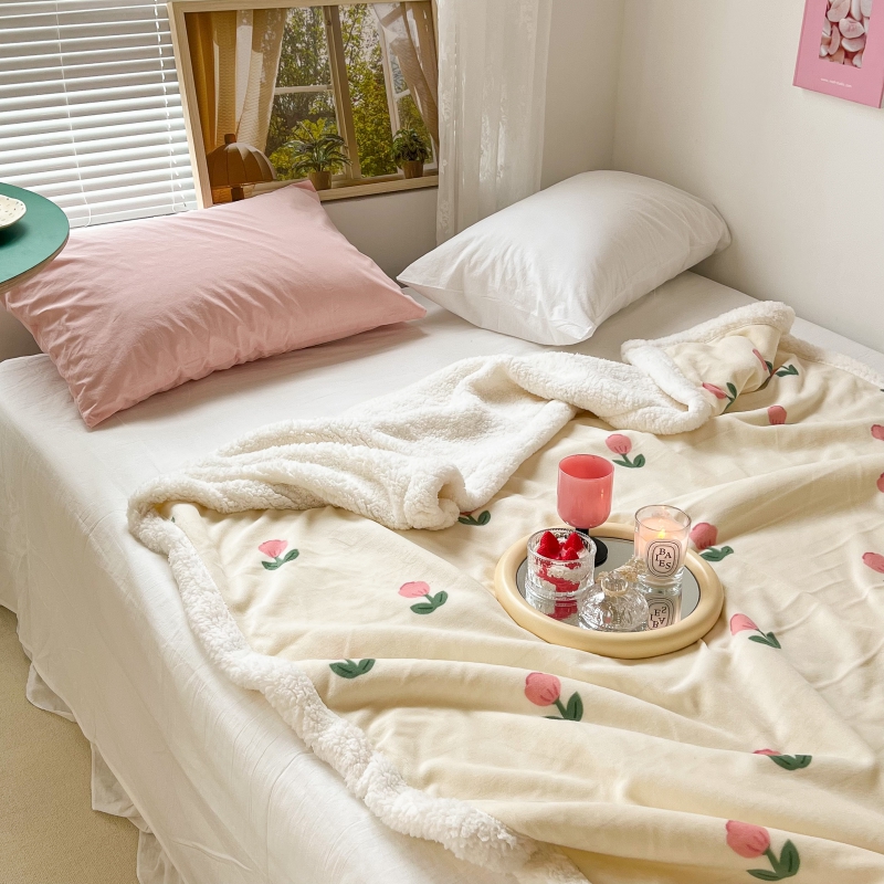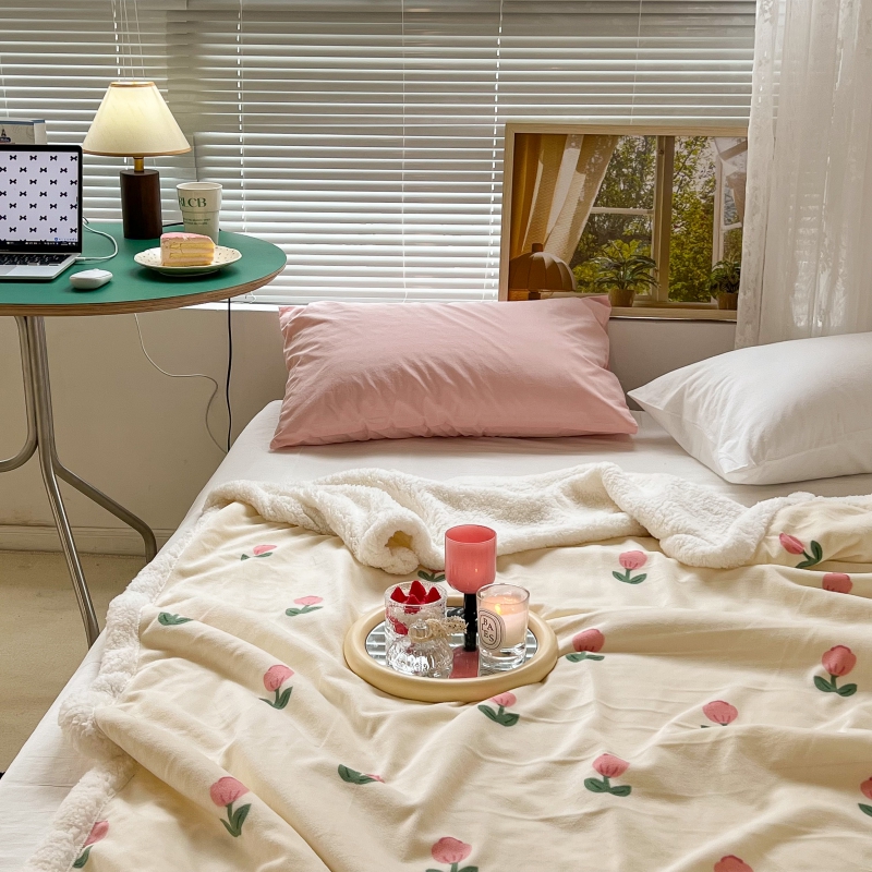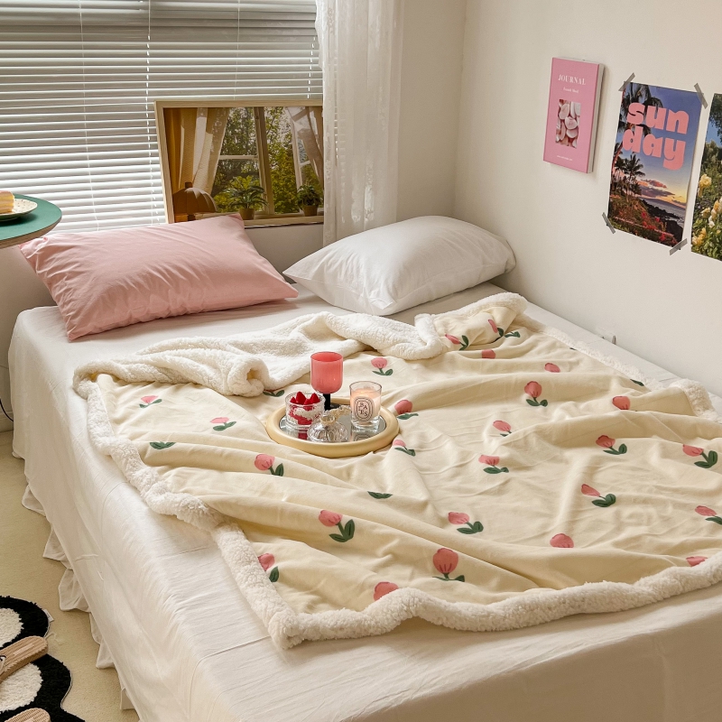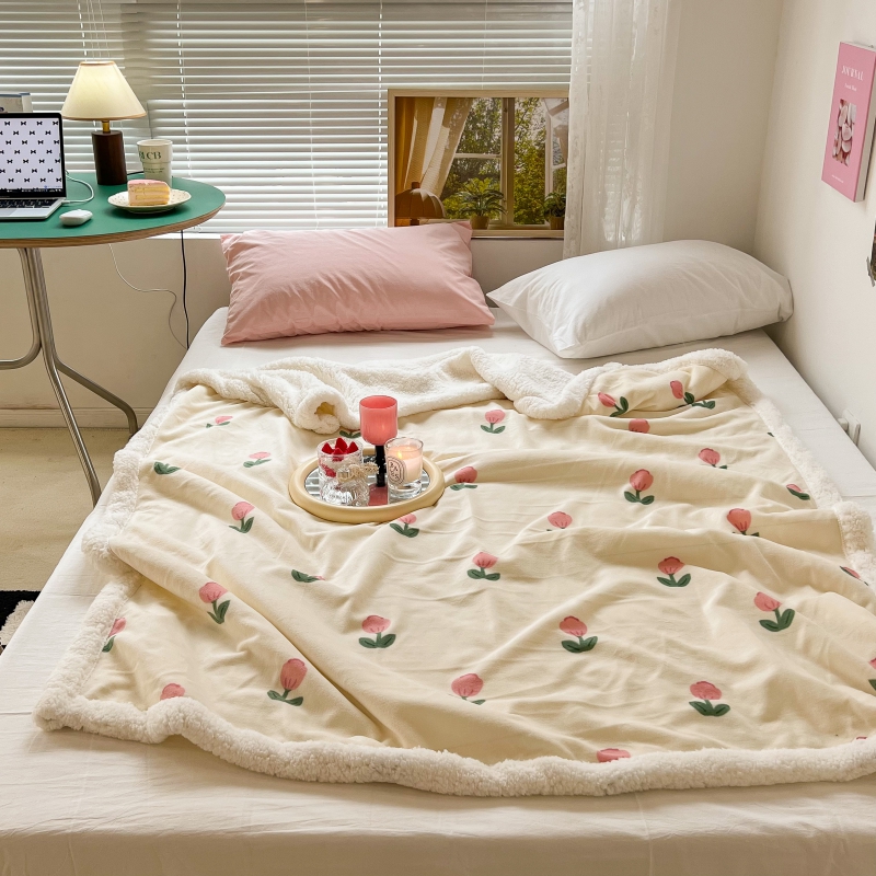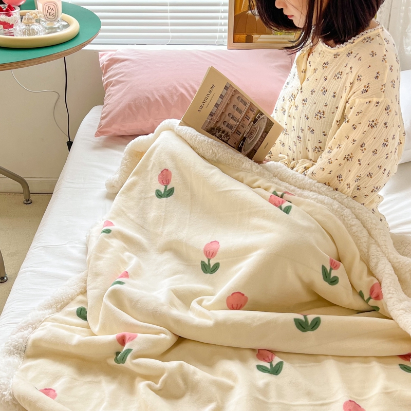 昔可家纺 2023新款ins风牛奶绒羊羔绒印花毛毯(风格一) 粉嫩小郁金