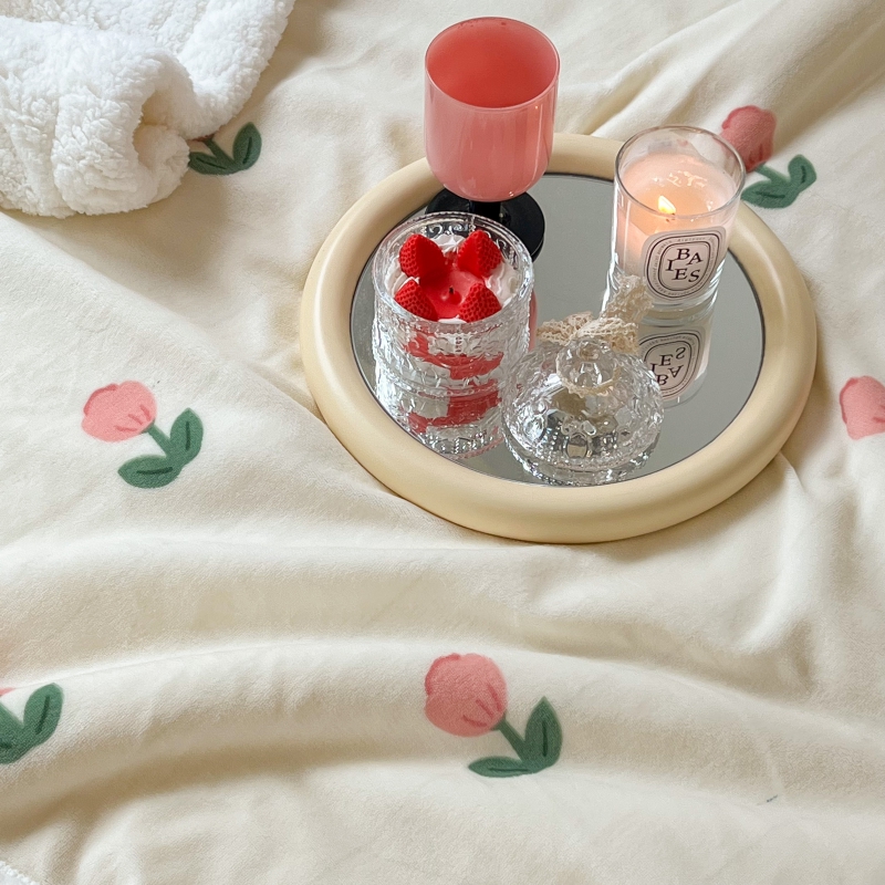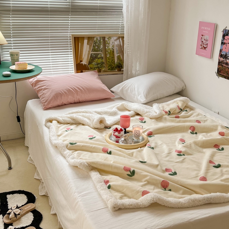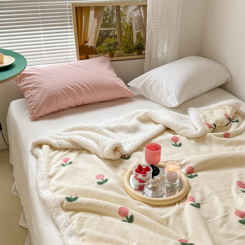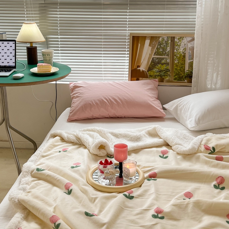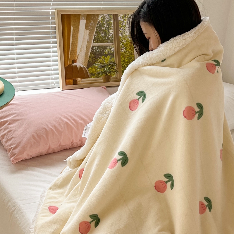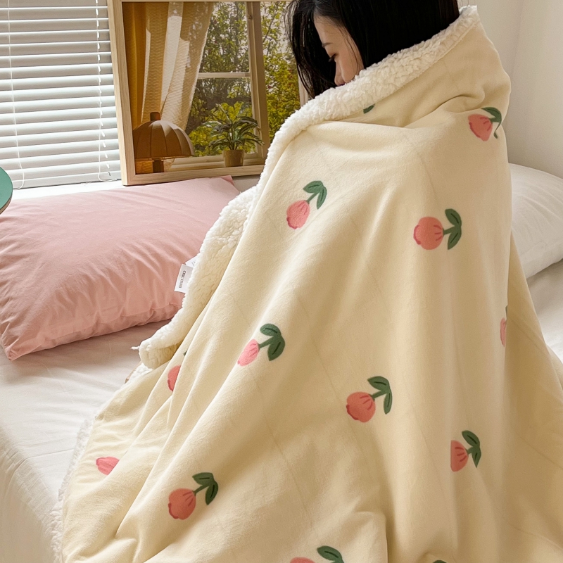 昔可家纺 2023新款ins风牛奶绒羊羔绒印花毛毯(风格一) 粉嫩小郁金