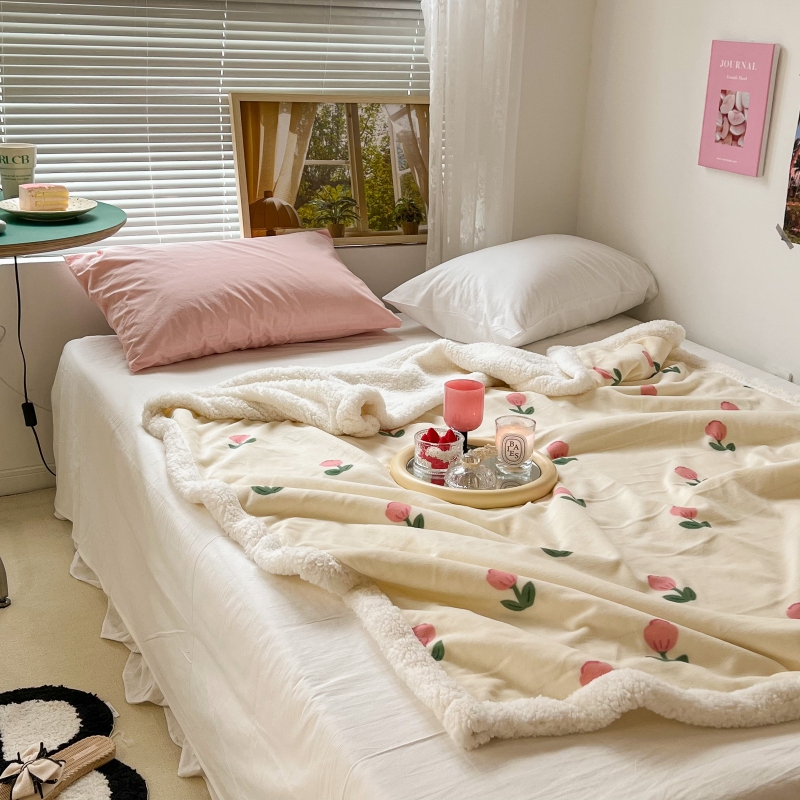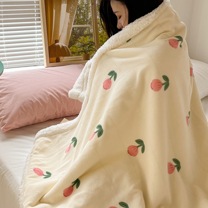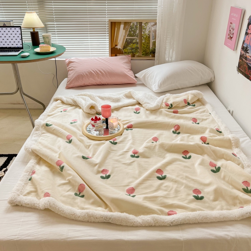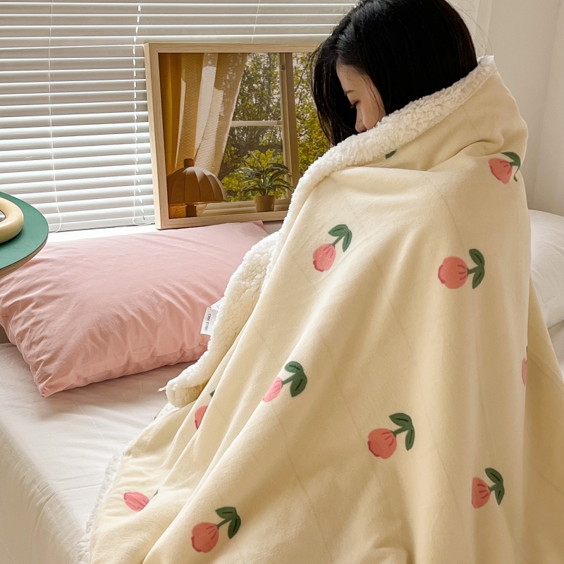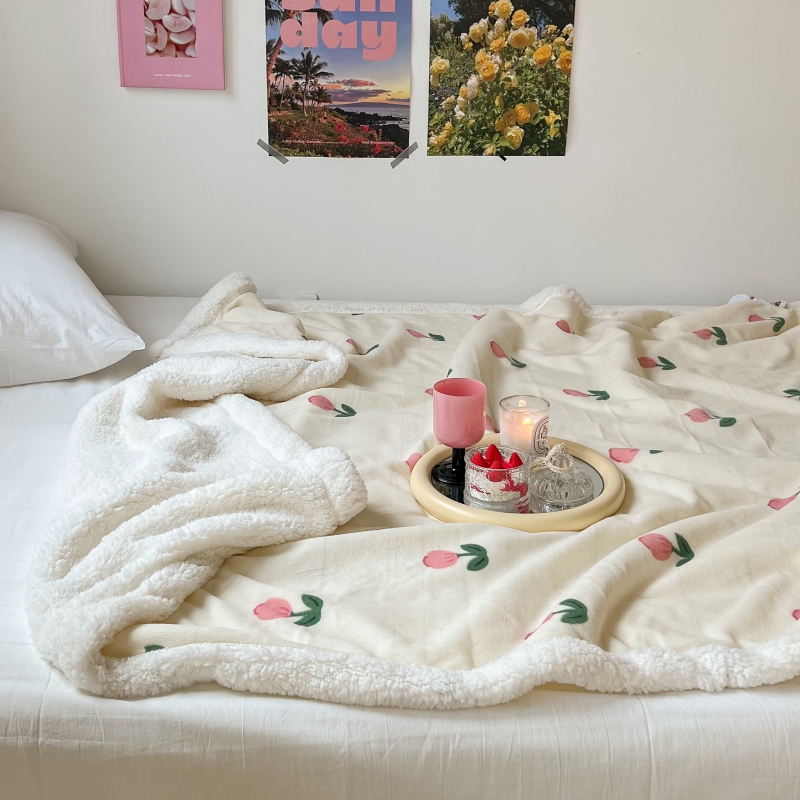 商品名称:昔可家纺 2023新款ins风牛奶绒羊羔绒印花毛毯(风格一) 粉嫩小郁金