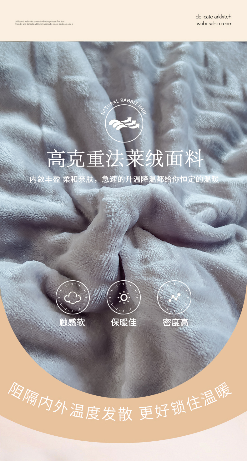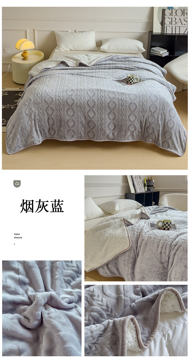 商品名称:宜家坊新款秋冬高克重法莱绒羊羔绒立体剪花纯色多功能毛毯 烟灰蓝