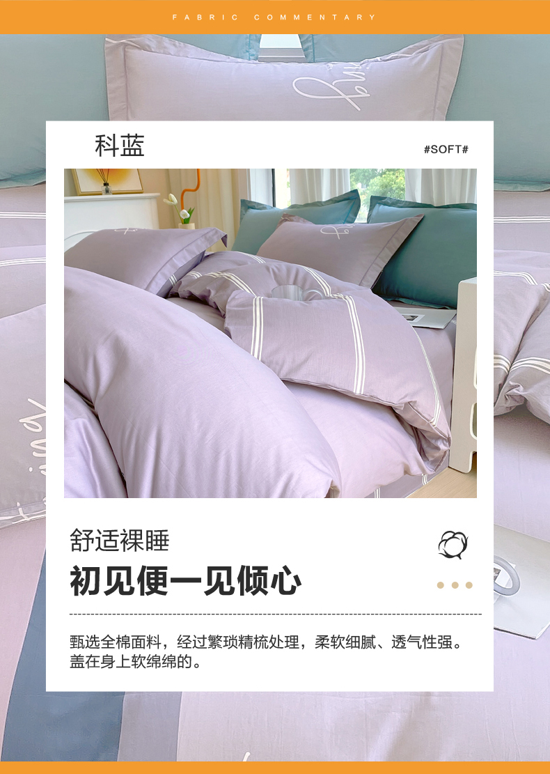商品名称:星期三 2023秋季新款铂金全棉13372四件套(加老板微信有会员价) 科蓝