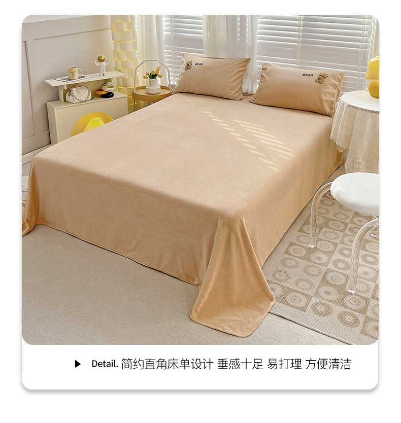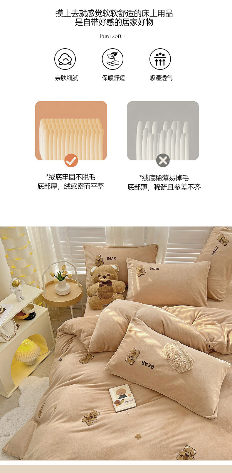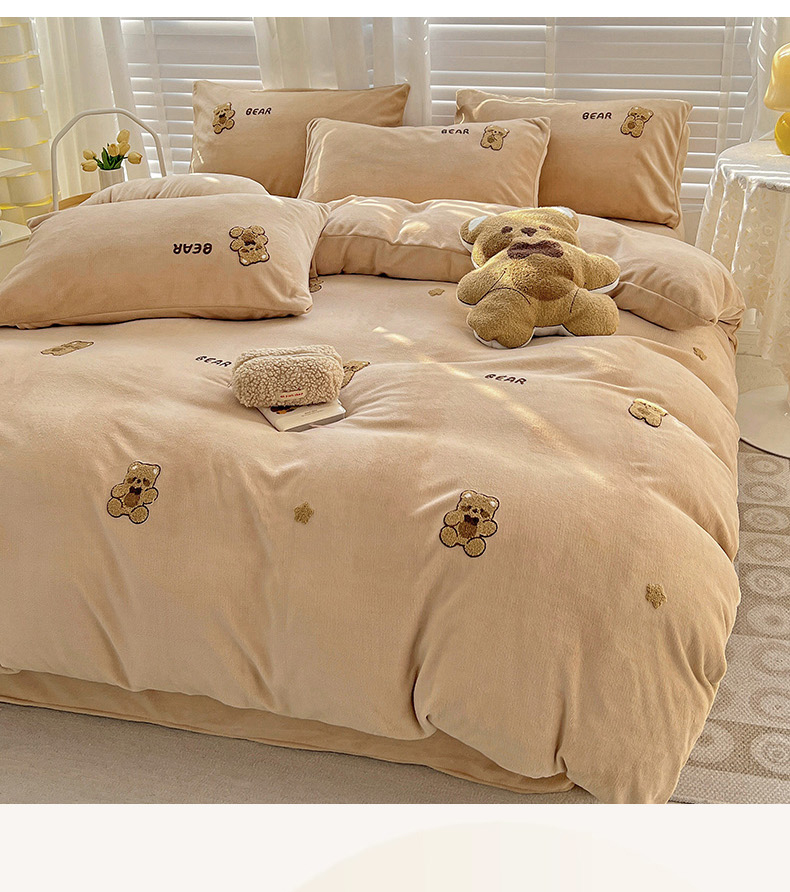 商品名称:寐居家纺 2023毛巾绣牛奶绒四件套 萌萌熊-咖