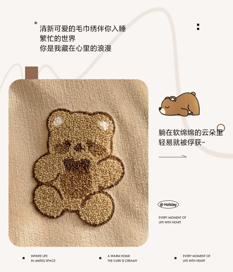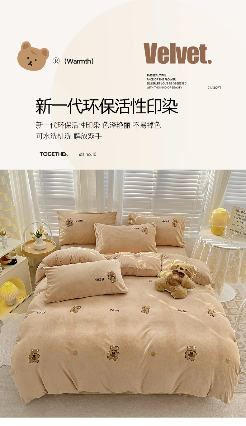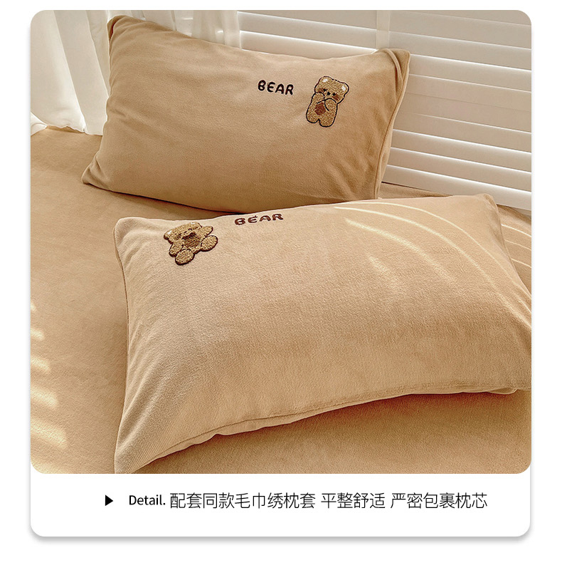 寐居家纺 2023毛巾绣牛奶绒四件套 萌萌熊-咖