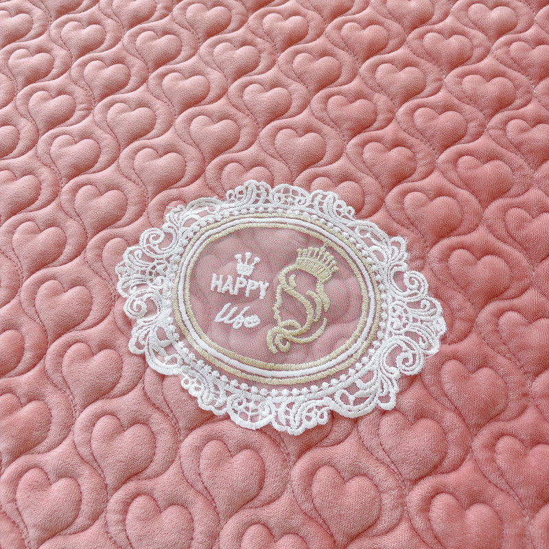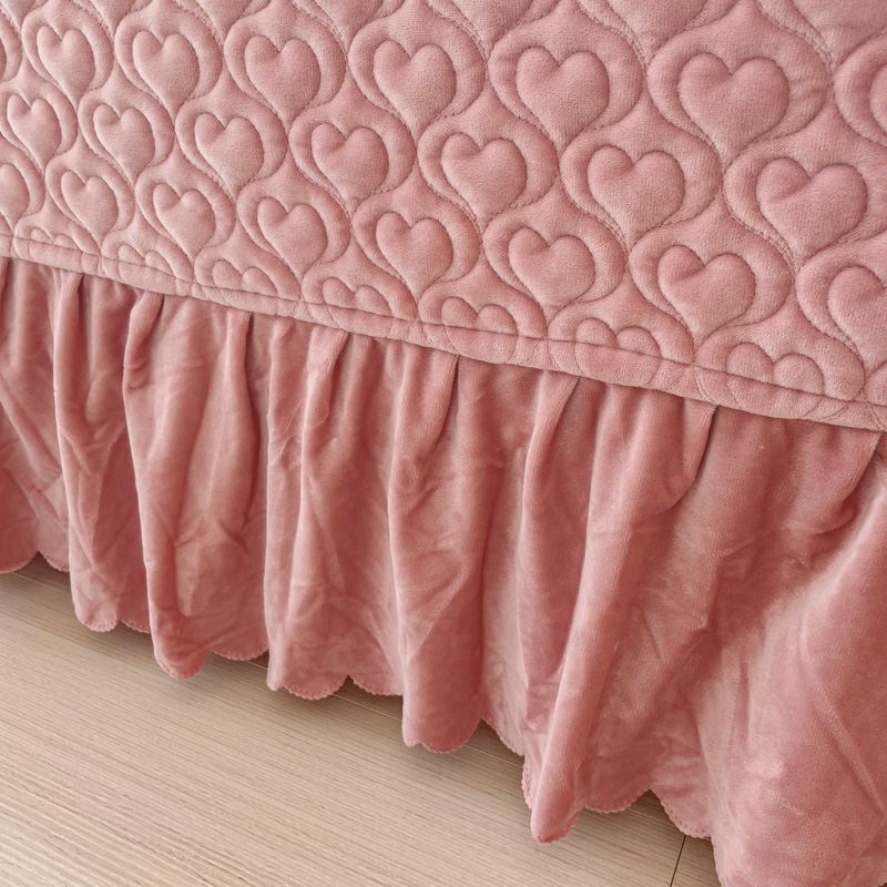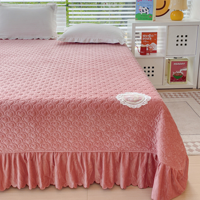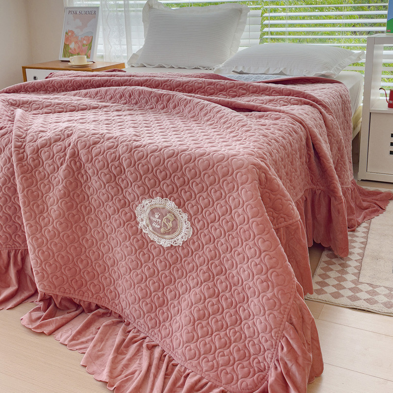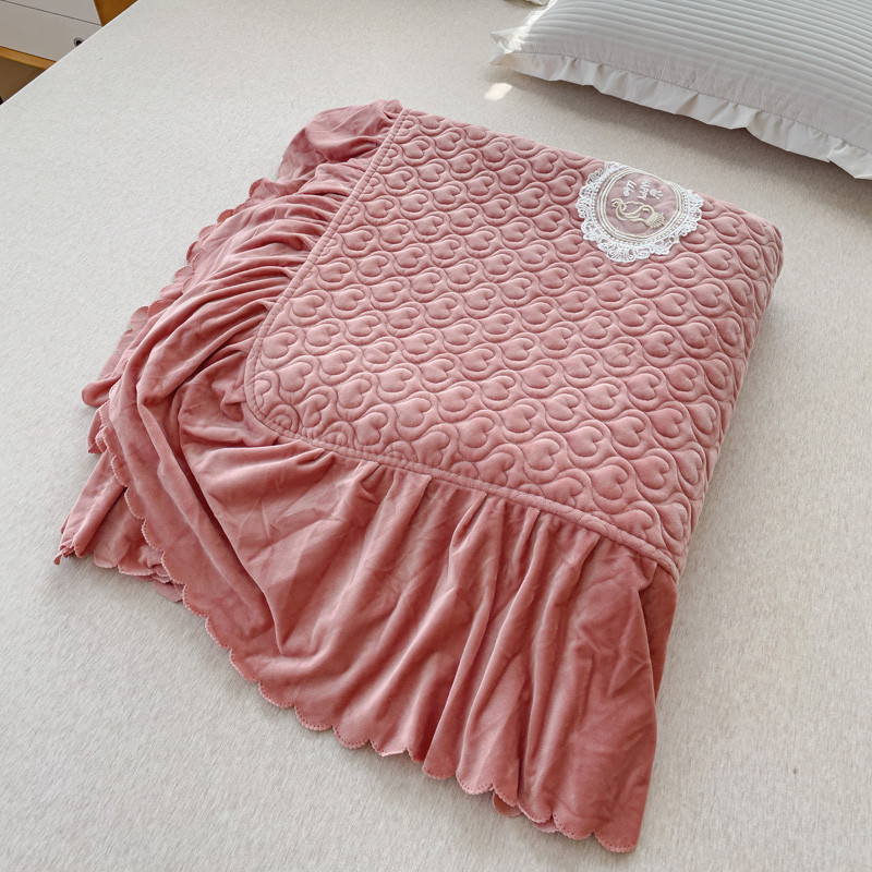 雅眠居 2023秋冬新款纯色牛奶绒床盖床裙款蕾丝边素色婴儿绒床盖 爱心-浅粉
