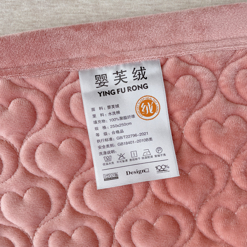 商品名称:雅眠居 2023秋冬新款纯色牛奶绒床盖床裙款蕾丝边素色婴儿绒床盖 爱心-浅粉