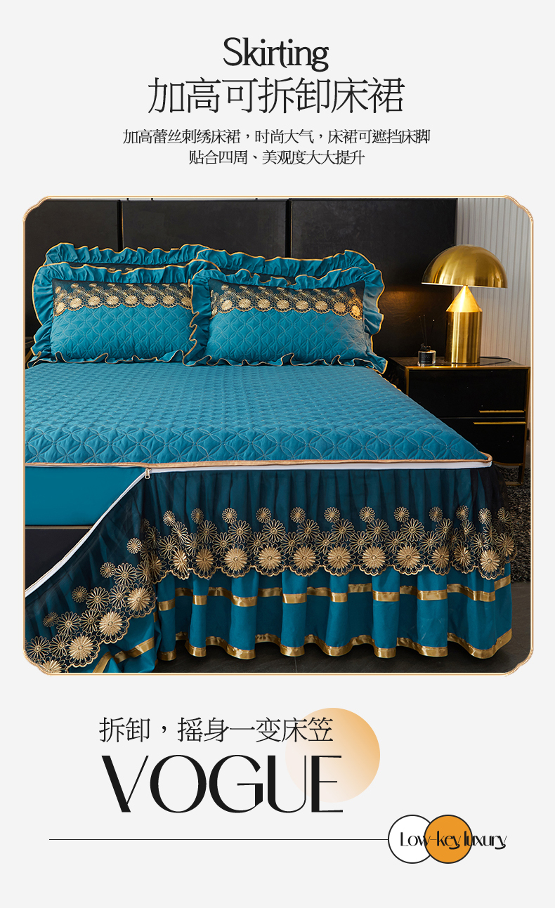 (总)罗艺轩 2024新款色织蕾丝夹棉床裙三件套-皇家贵族,皇家贵族-宝石蓝,皇家贵族-黛绿色,皇家贵族-魅力紫,皇家贵族-奶茶色,皇家贵族-珊瑚红,皇家贵族-石青色,皇家贵族-香妃粉,皇家贵族-烟熏灰