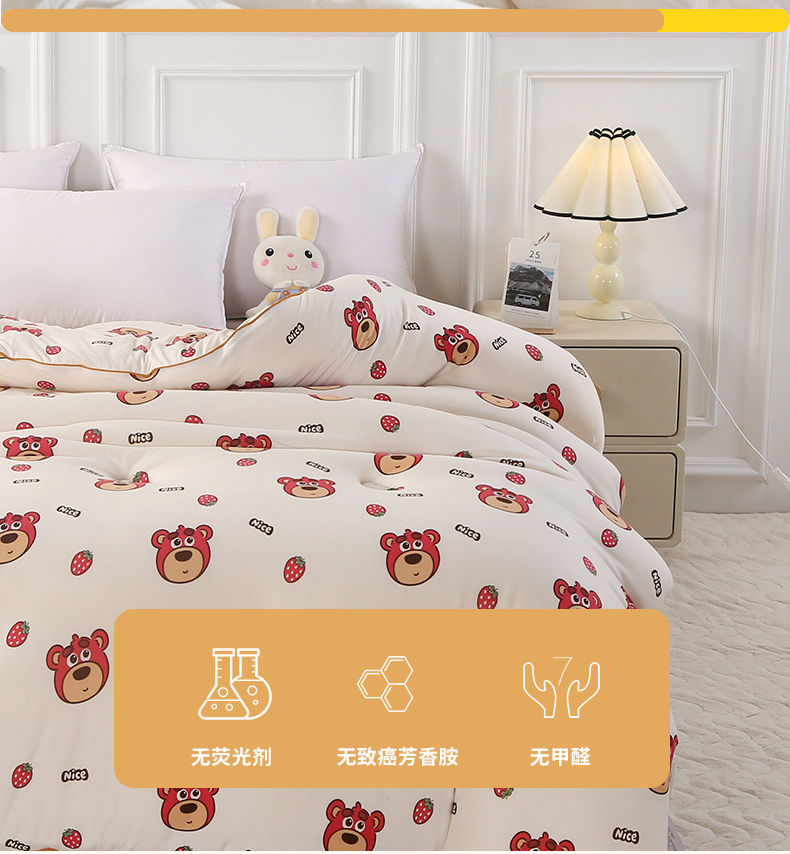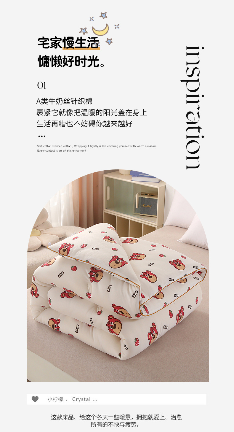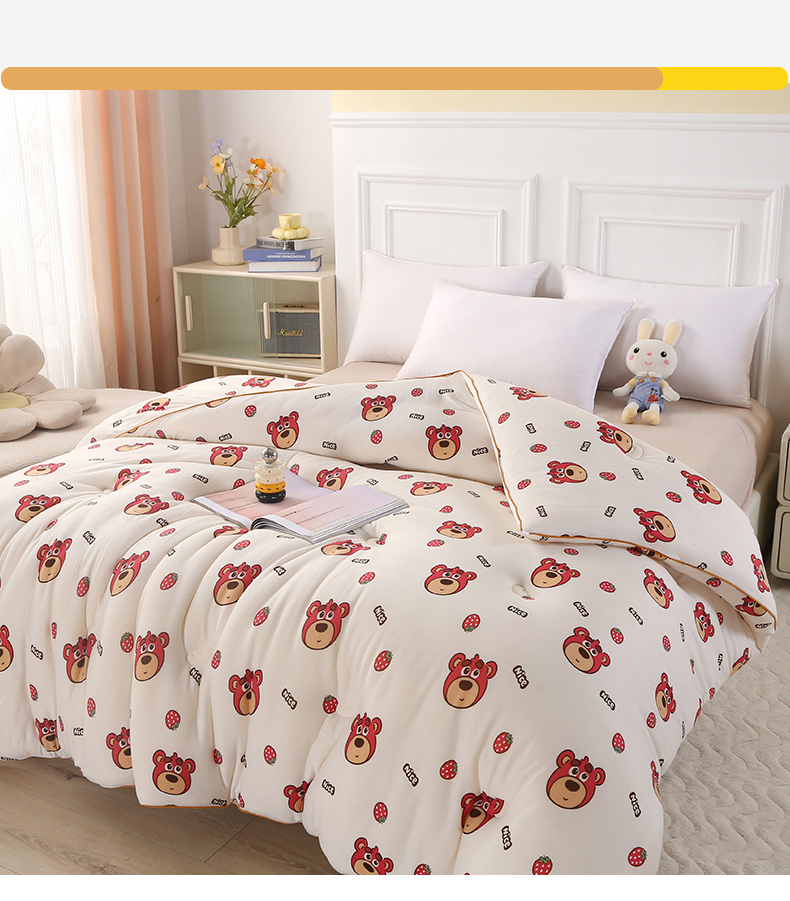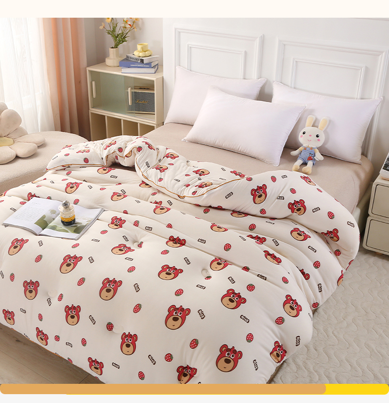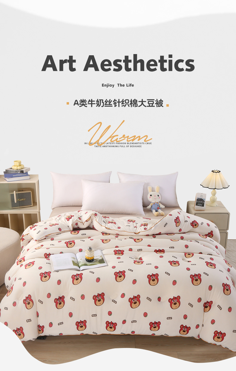 • 91家纺网 家纺一手货源 找家纺 薇玛仕 2025新款A类牛奶丝针织棉印花大豆被 草莓熊