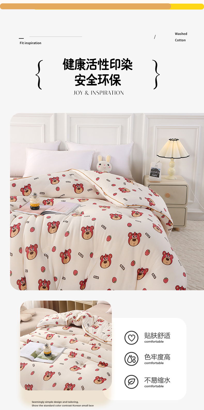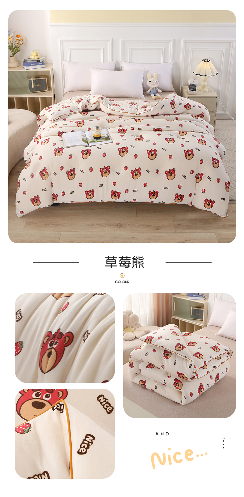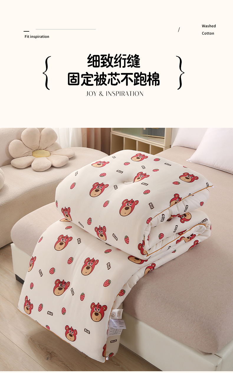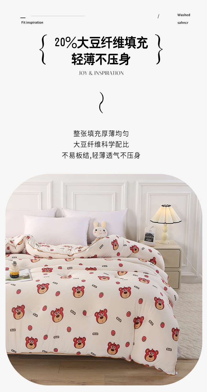 • 91家纺网 家纺一手货源 找家纺 薇玛仕 2025新款A类牛奶丝针织棉印花大豆被 草莓熊