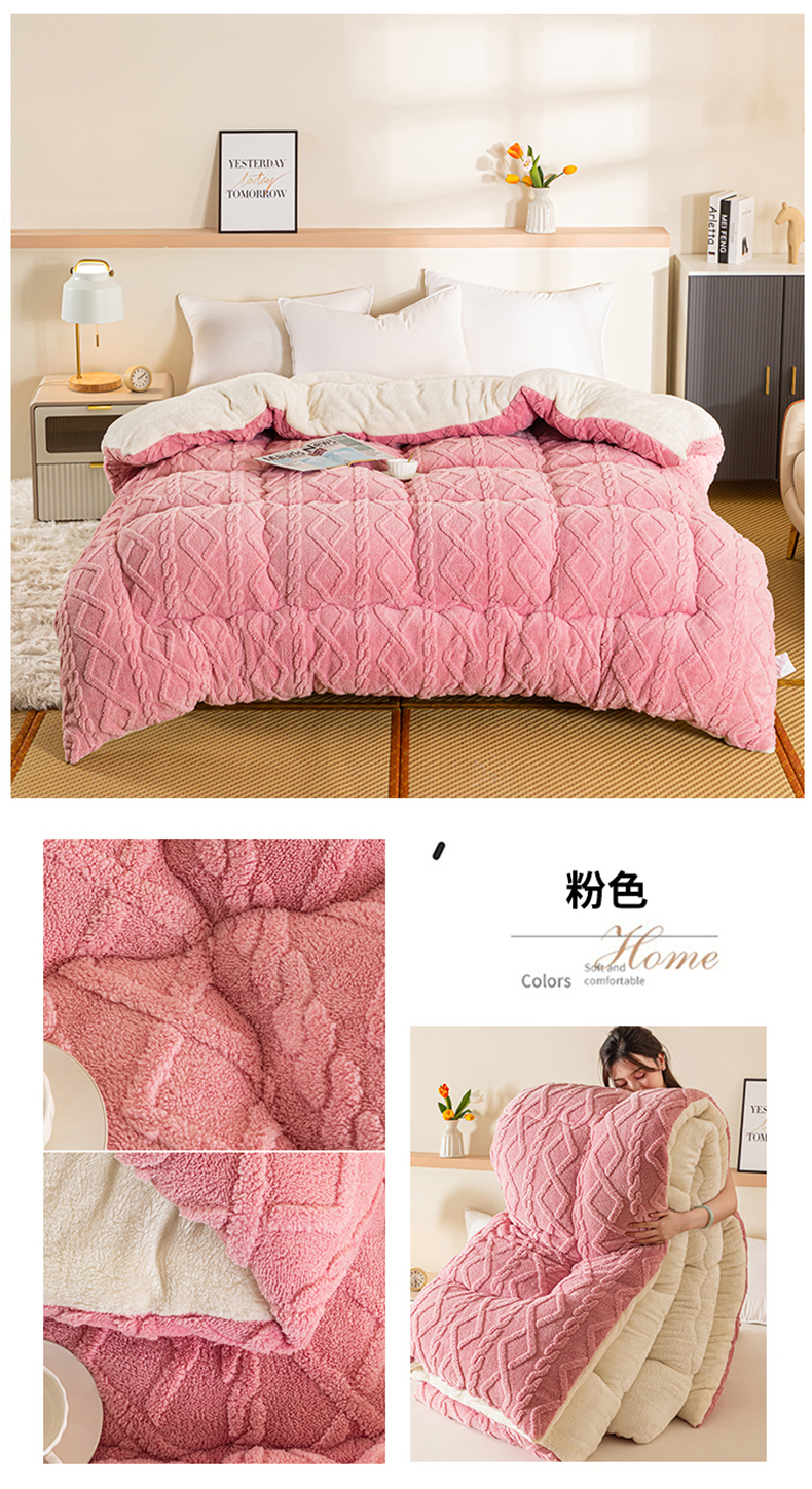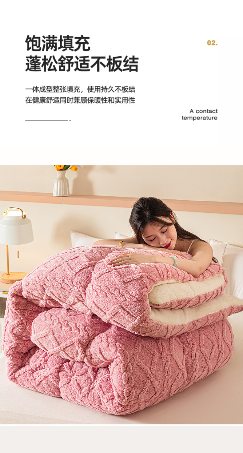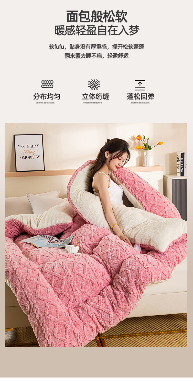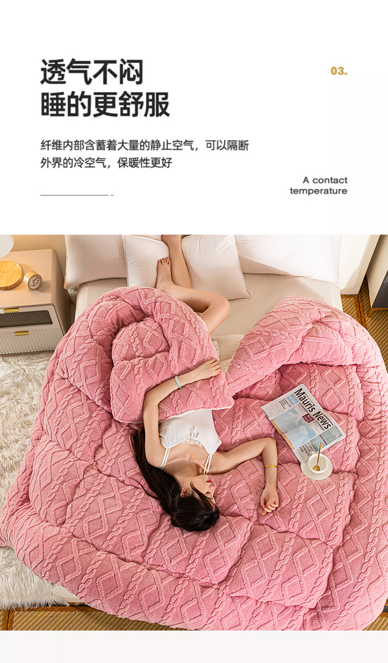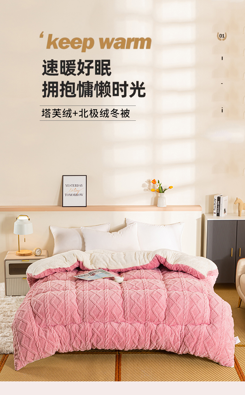 • 91家纺网 家纺一手货源 找家纺 悠米悠家 2025新款塔芙绒北极绒加厚冬被子被芯 粉色