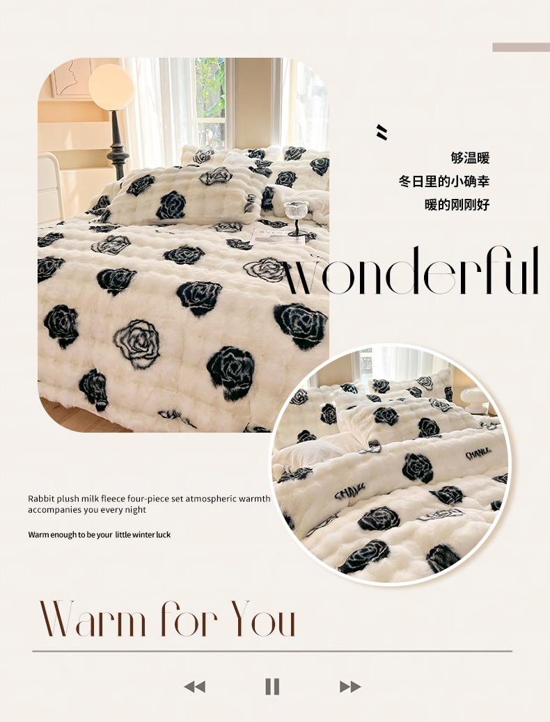 (总)妖妖家纺 2025新款加厚印花兔毛绒保暖四件套,斑斓可可,花谷,花絮语,幻蝶,萌萌奶熊,墨染,奶油泡芙,你好小狗,少女心蝴蝶结,手捧玫瑰,丝绒玫瑰,甜萌布布,夏夜梦蝶,小棕豹,心跳,雪域豹纹,英伦狗狗,月下猫舞