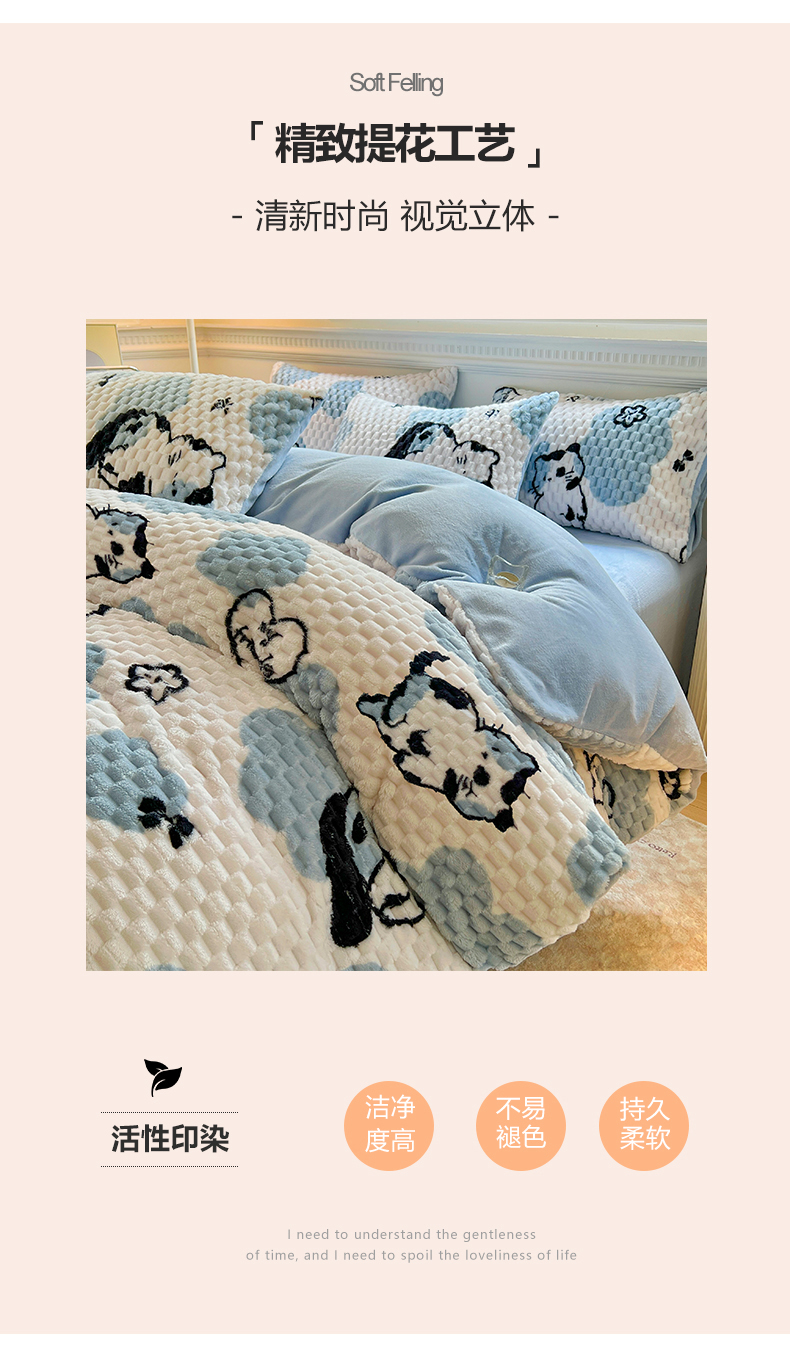 商品名称:宜代光年 2023新款豆豆绒提花四件套 大豆绒-可爱猫