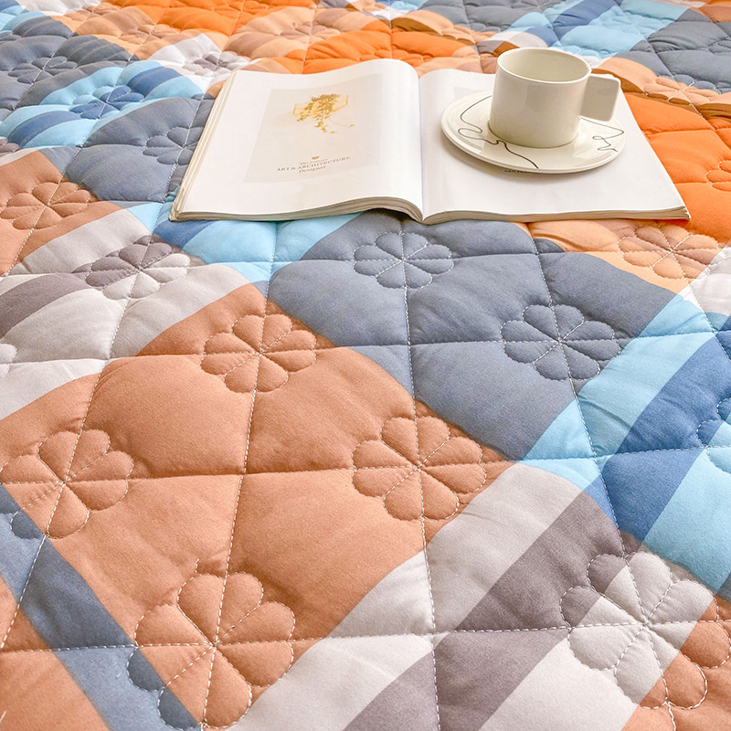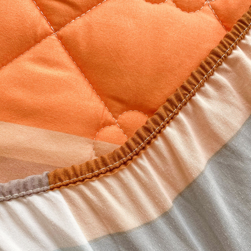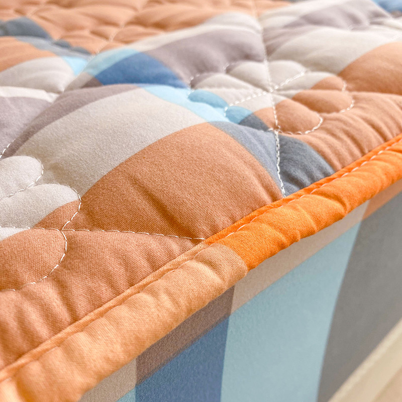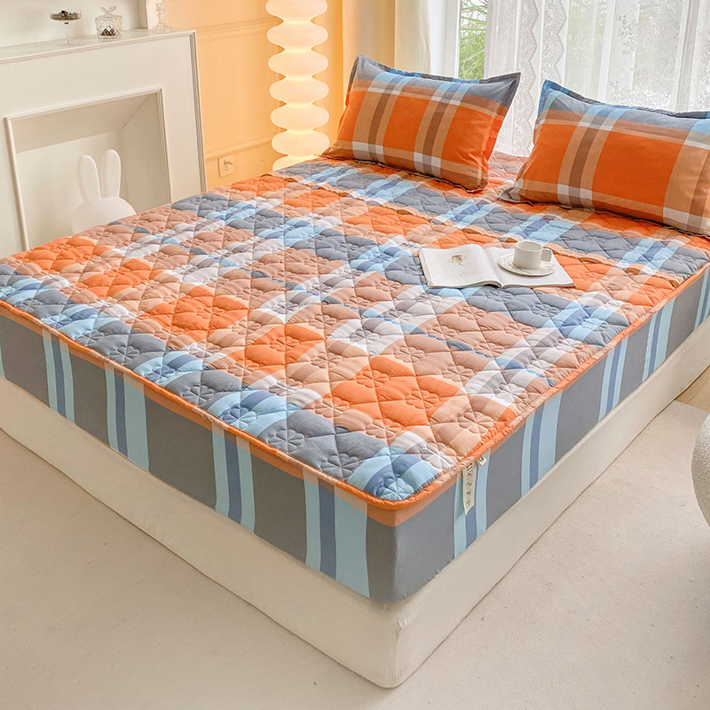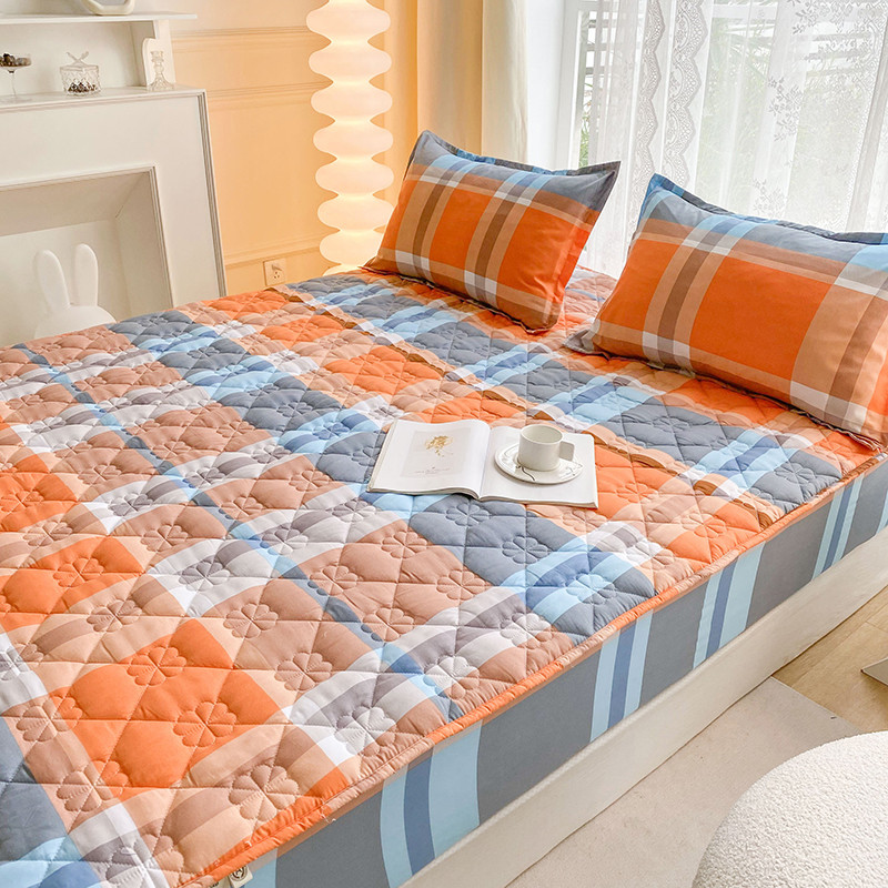 米柳 2024新款亲肤夹棉印花床笠 兰橘大格