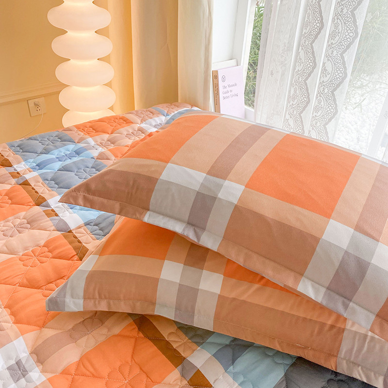 商品名称:米柳 2024新款亲肤夹棉印花床笠 兰橘大格